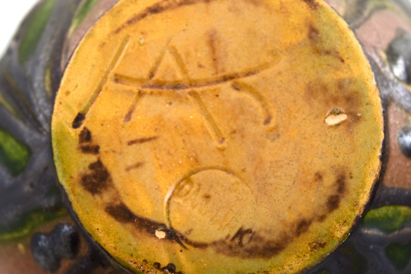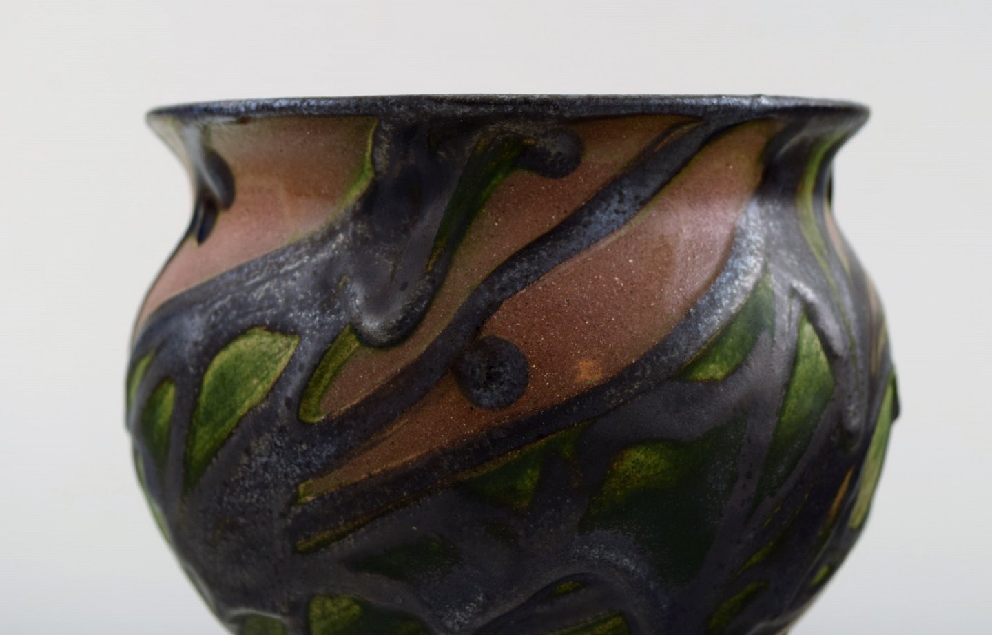 Kähler, HAK, glaseret stentøjsvase i moderne design. 1930/40´erne. Kohornsteknik. Blade og grene på brun baggrund.