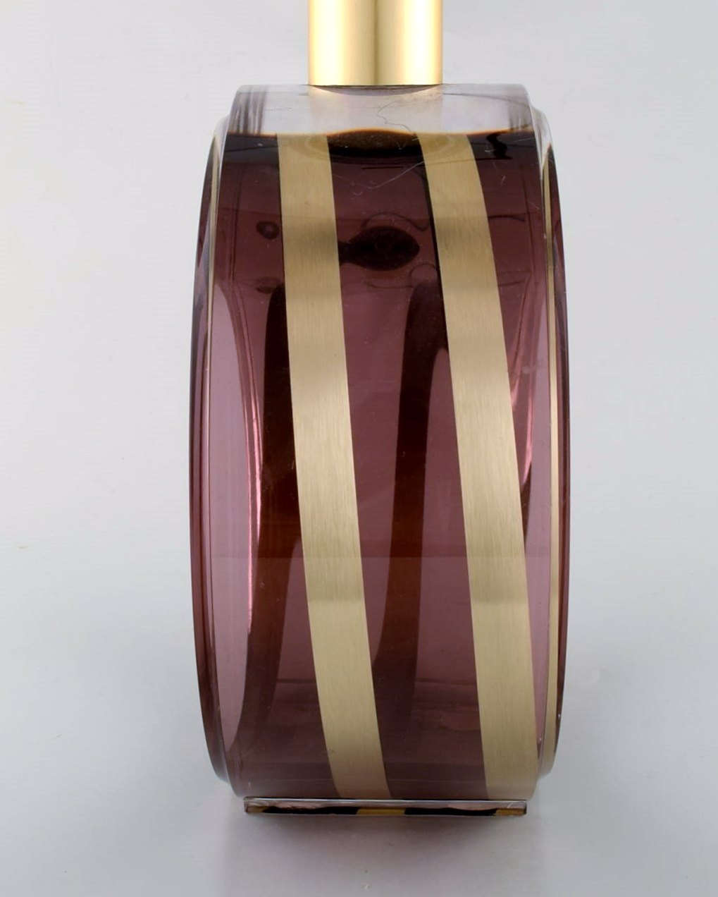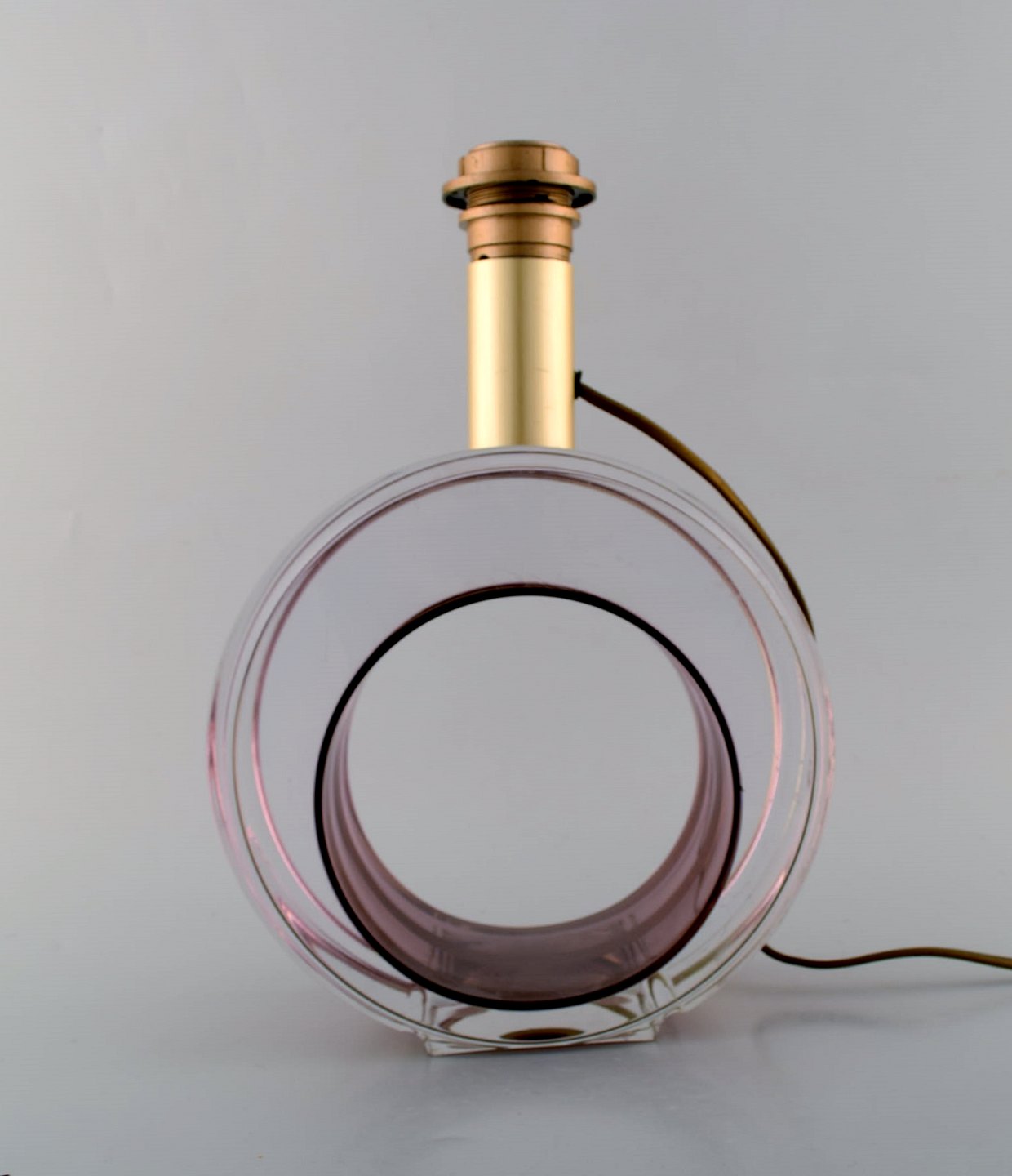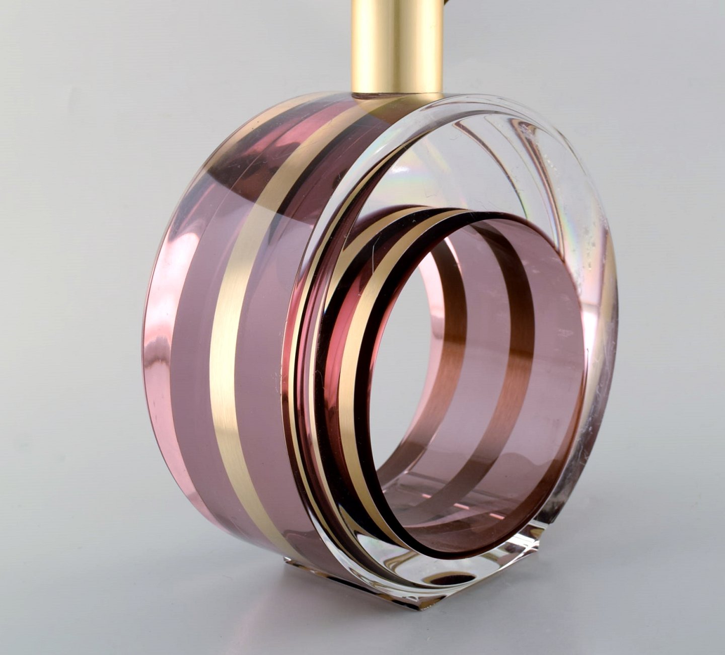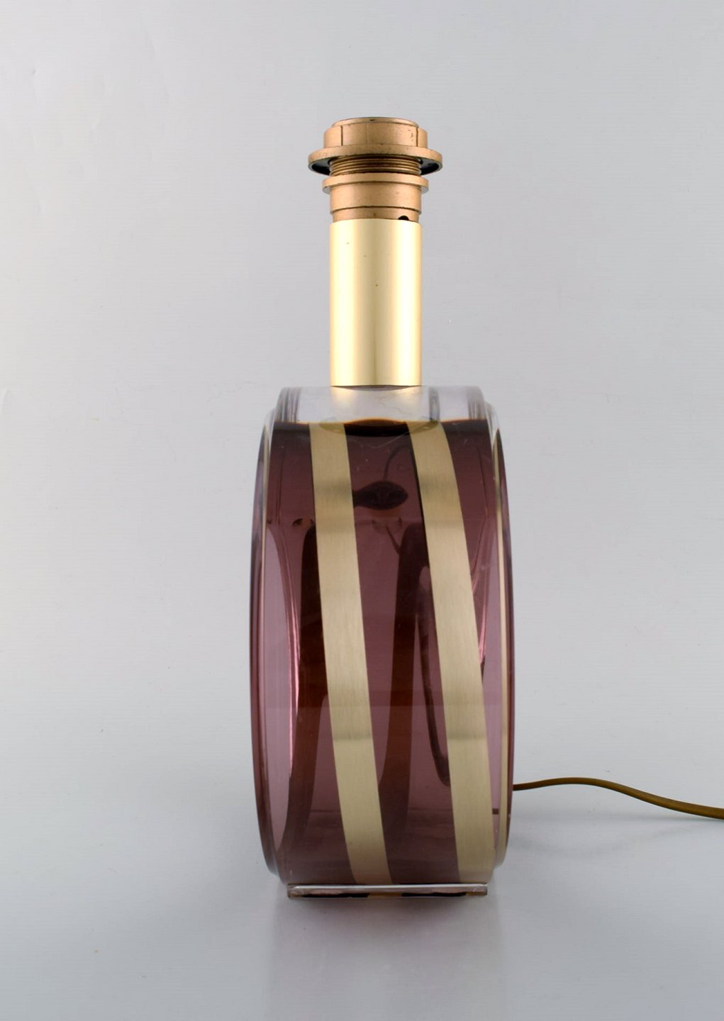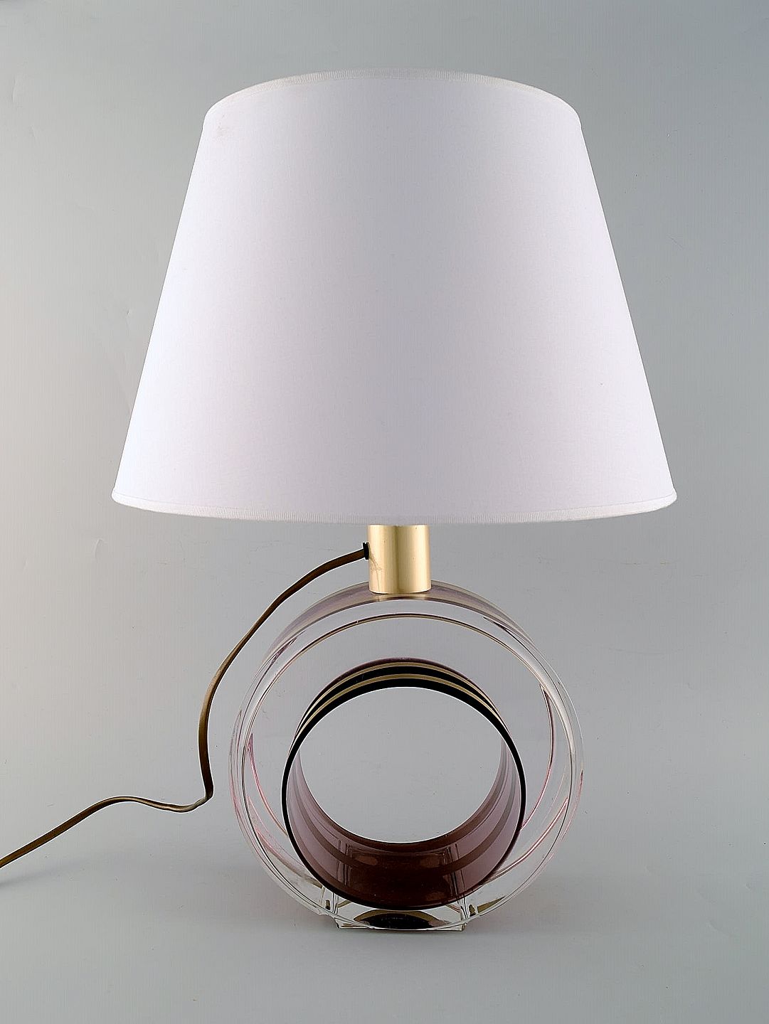 Italian design. Table lamp made of colored plexiglass and brass. 1970's.