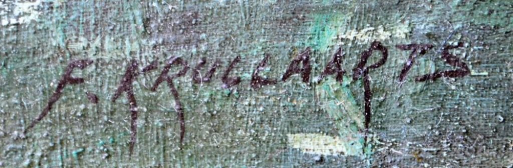 Krullaarts, F. (19. årh.) Holland: Køer på en mark. Olie på lærred. Signeret F. Krullaarts. 49 x 57 cm.