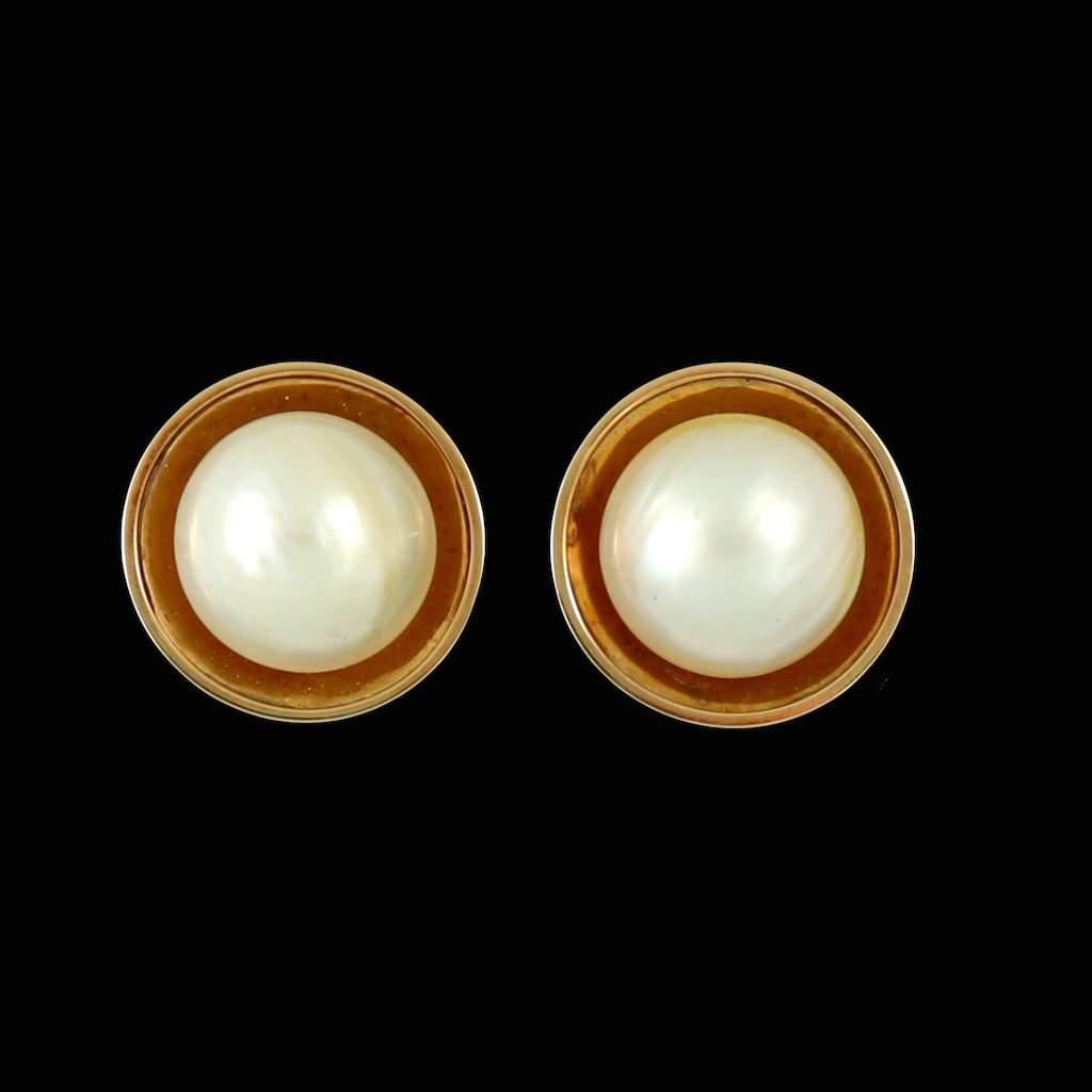Hermann Siersbøl. Øreklips i 14k guld med perler.