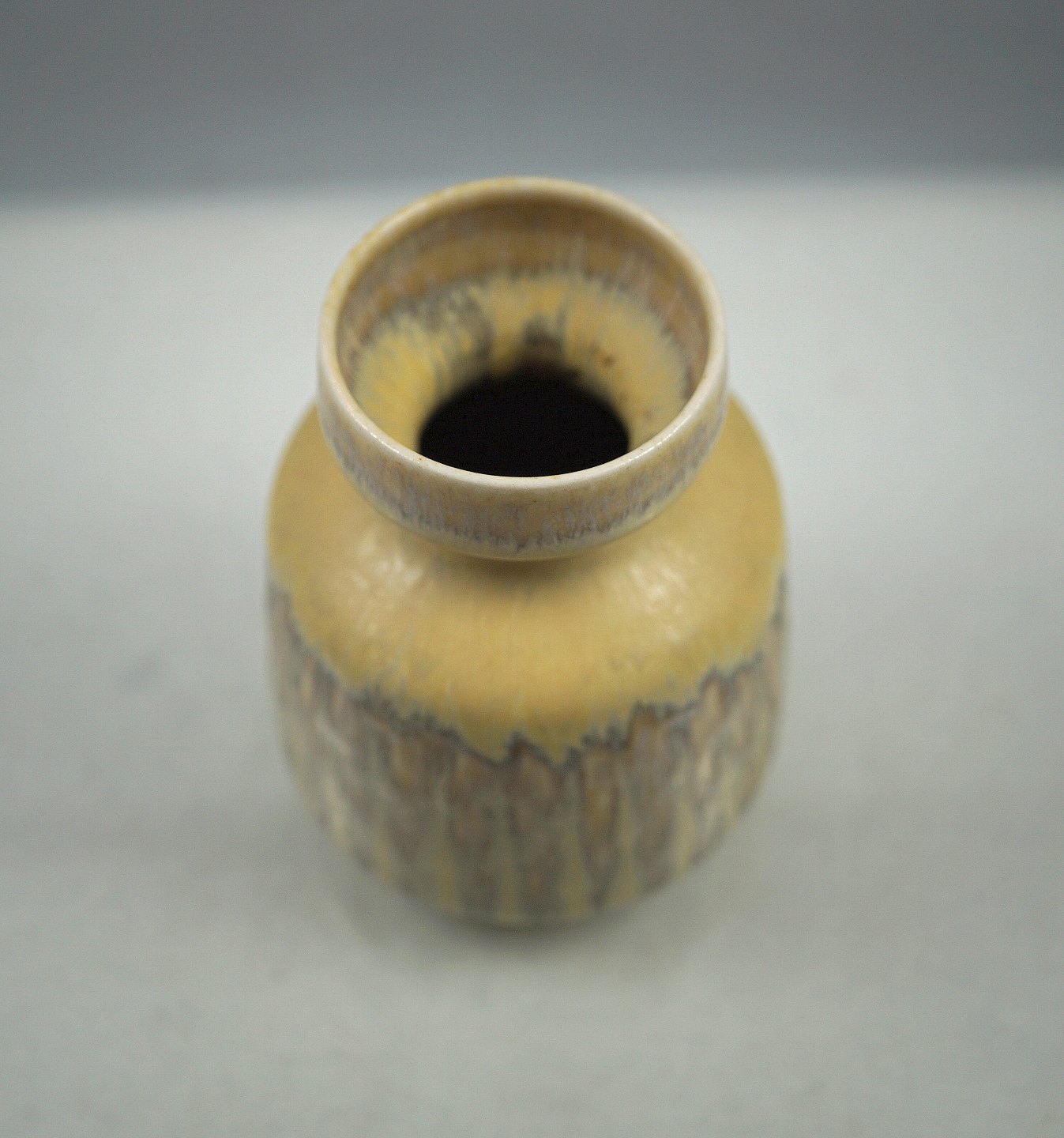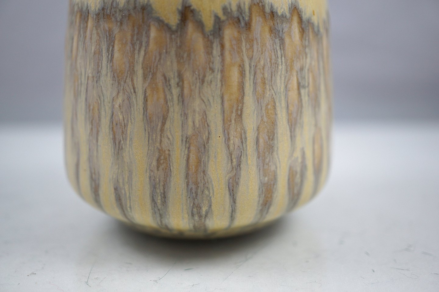 Saxbo vase. Vasen, model 95, er dekoreret med harepelsglasur i farven lysgrågrøn glasur.