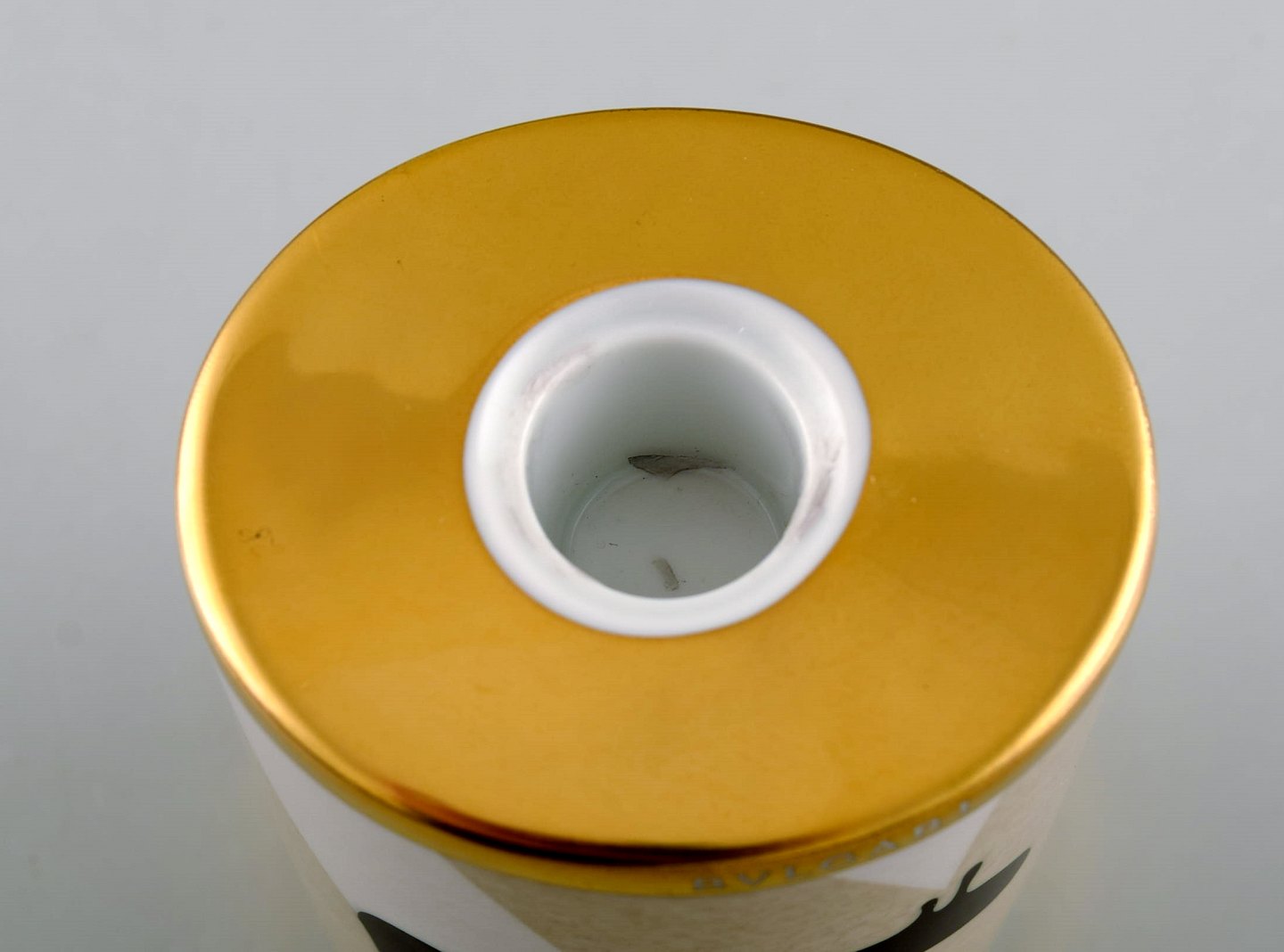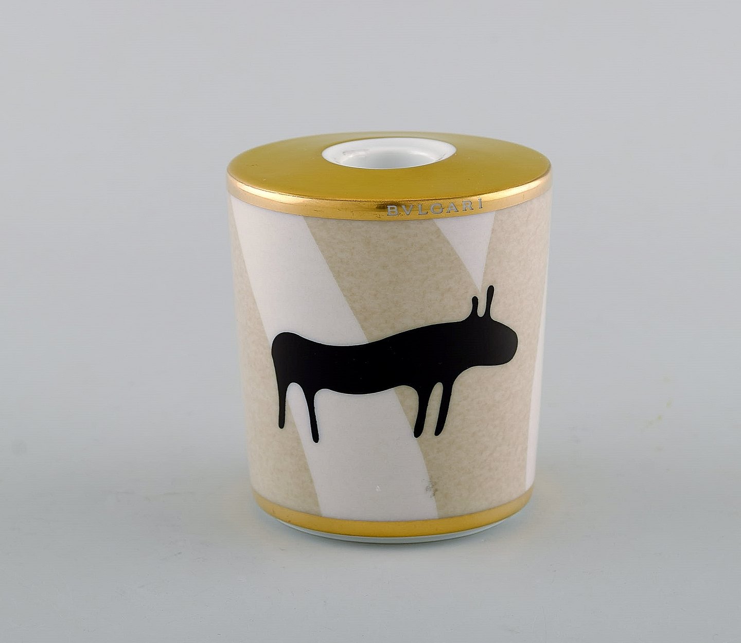 Bvlgari / Bulgari for Rosenthal. "Pascolo Rupestre" lysestage i porcelæn. Dyremotiver og gulddekoration. Sent 1900-tallet.