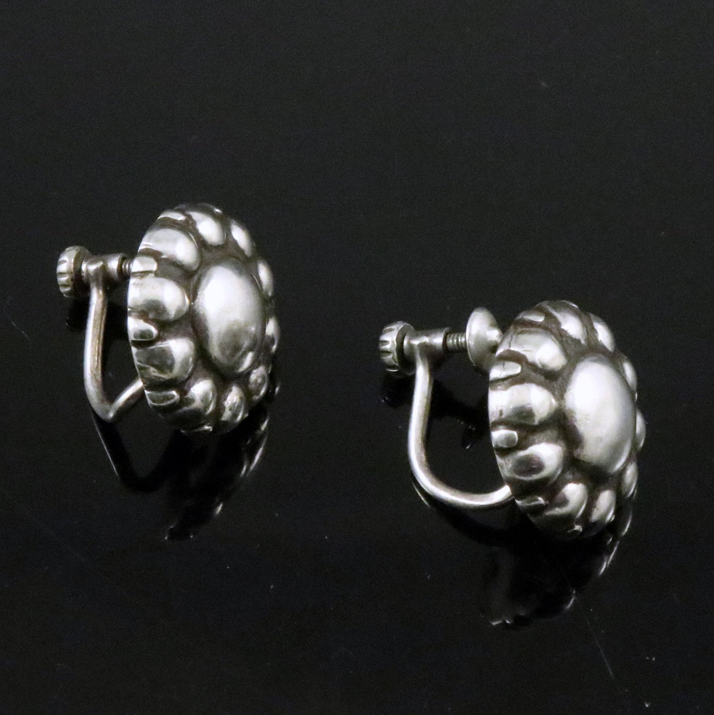 Evald Nielsen 1879 - 1958. Skønvirke øreskruer i sterling sølv.