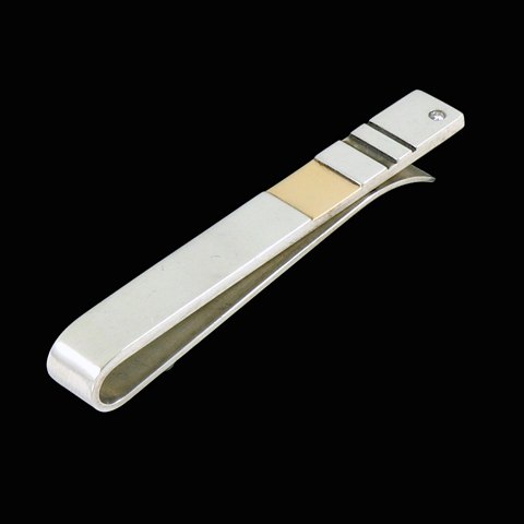 Georg Jensen Slipsenål i sterlingsølv med 18k guld og Diamant 0,03ct #152B
