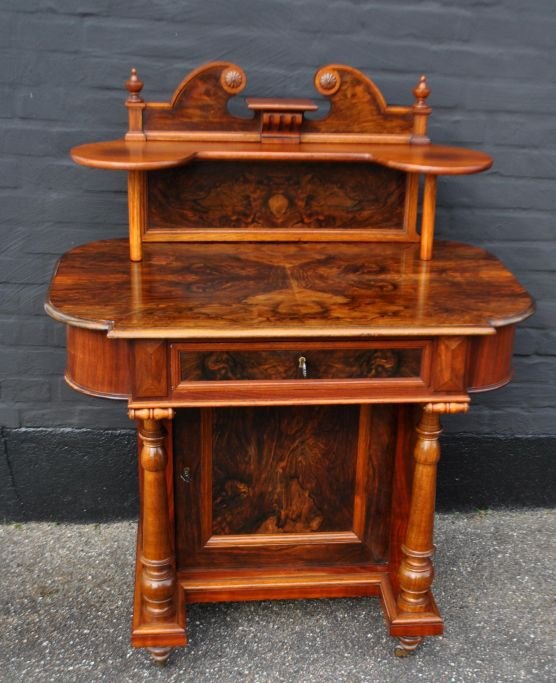 Dansk Davenport i valnødderod og mahongi med opsats, 19. årh.