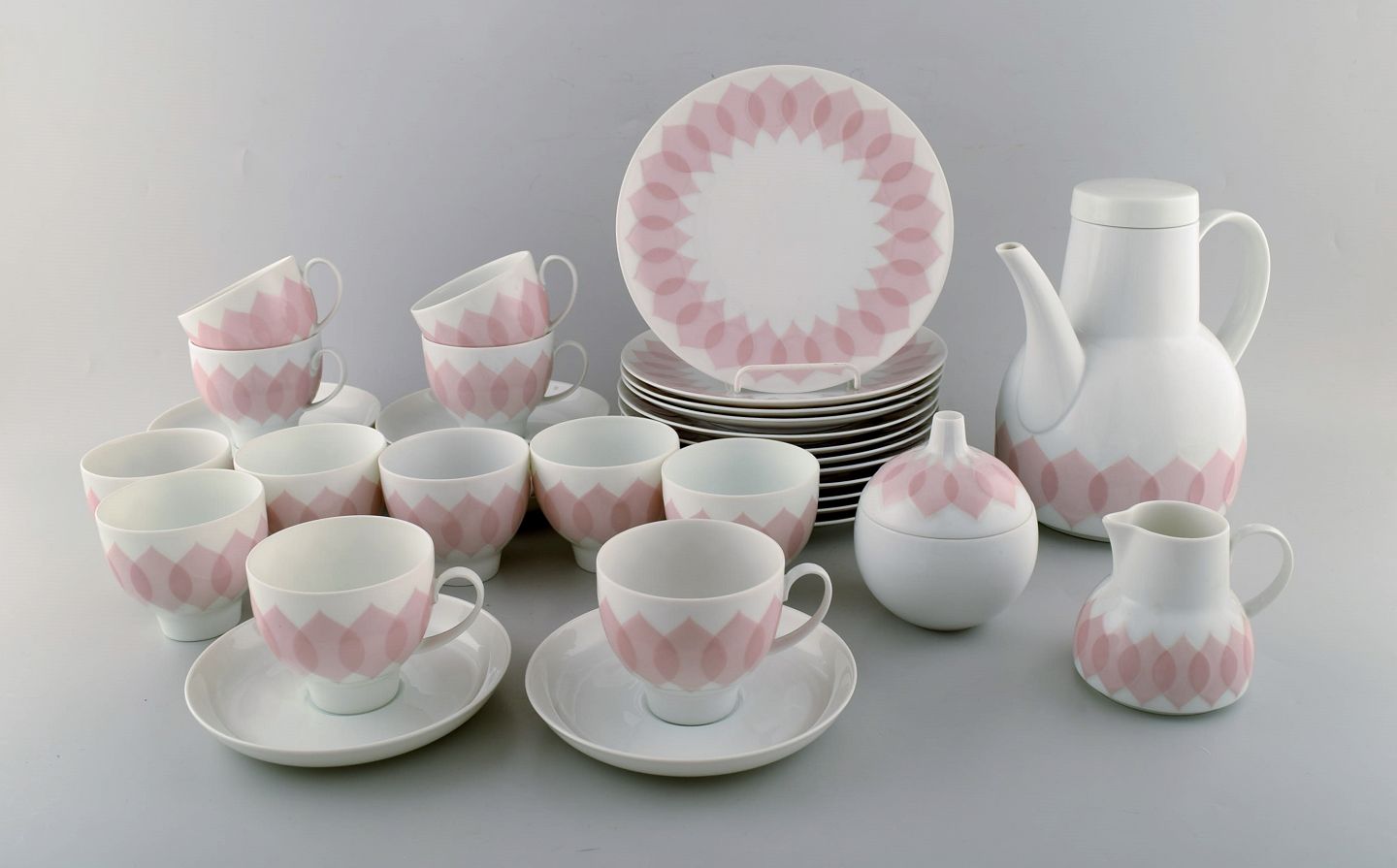 Bjørn Wiinblad for Rosenthal. Pink "Lotus" porcelain coffee service for twelve persons. 1980's.