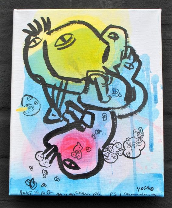 Nakajima, Yoshio (1940 -) Sverige/Japan: My green pax. Mixed media på lærred. Signeret. 27 x 22 cm.