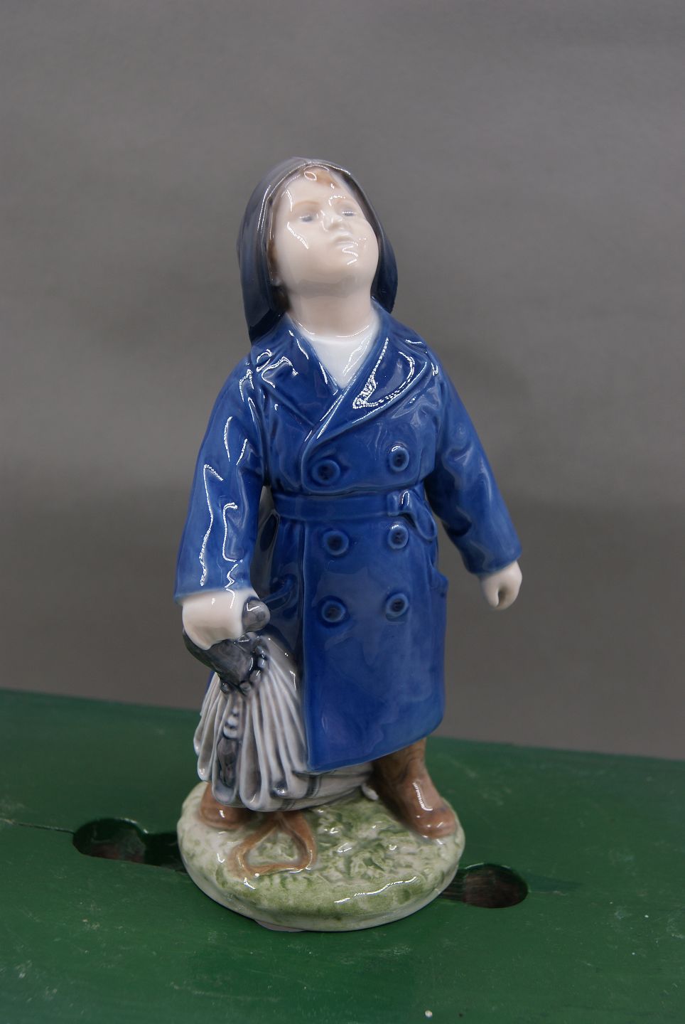 Royal Copenhagen porcelænsfigur nr. 3556, Dreng i regnfrakke med paraply