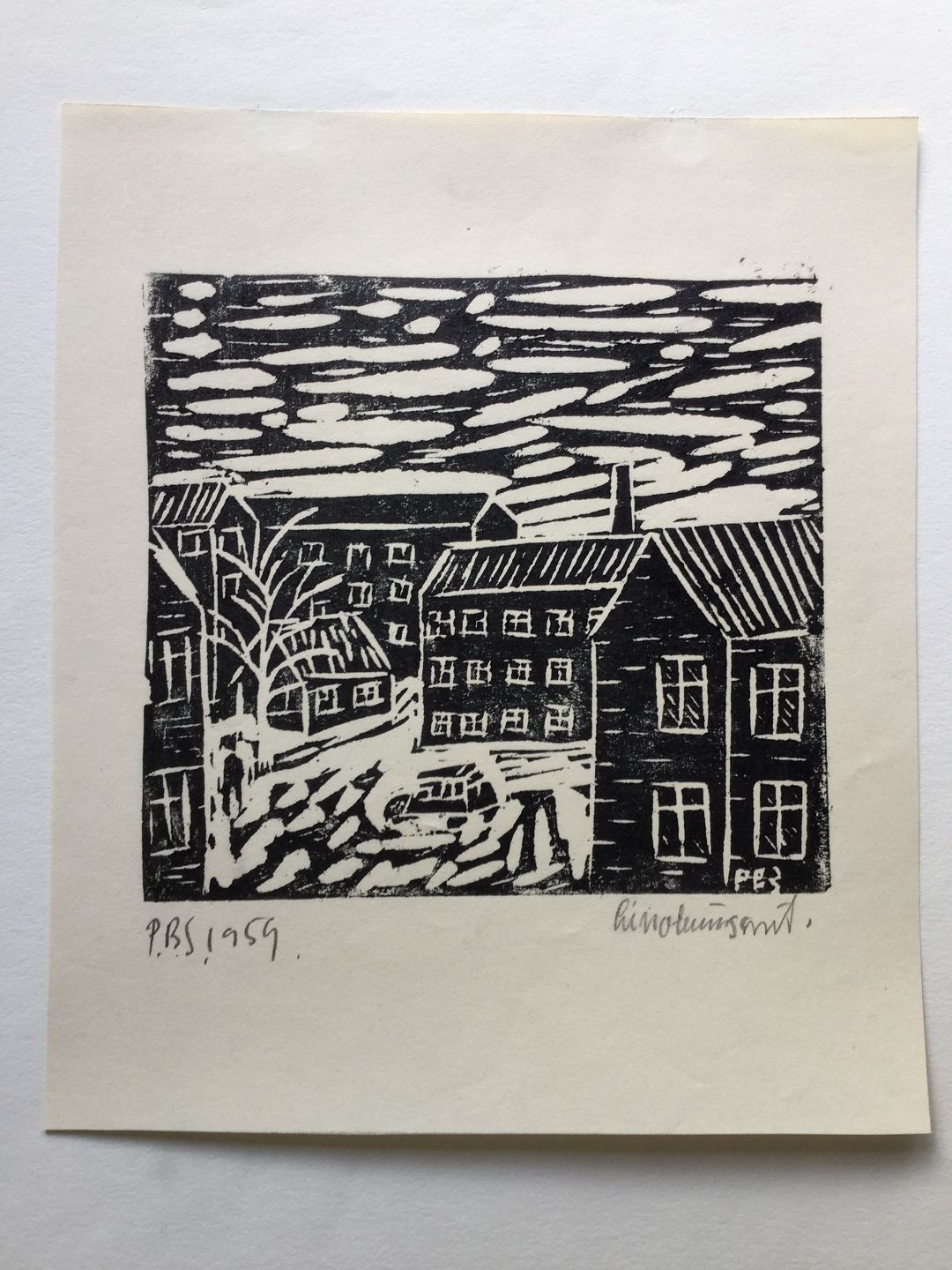 Sign.: P.B.S. 1959 (PBS i stokken)