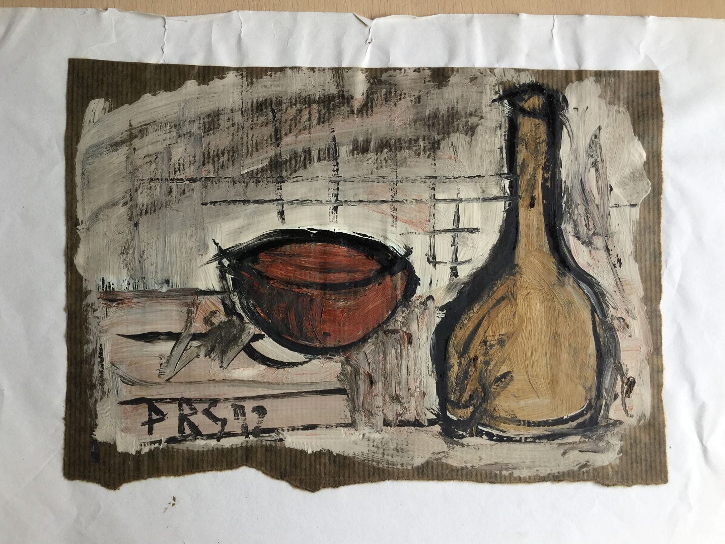 Pastel af Peder Brøndum Sørensen - Opstilling med flaske og skål 1972.