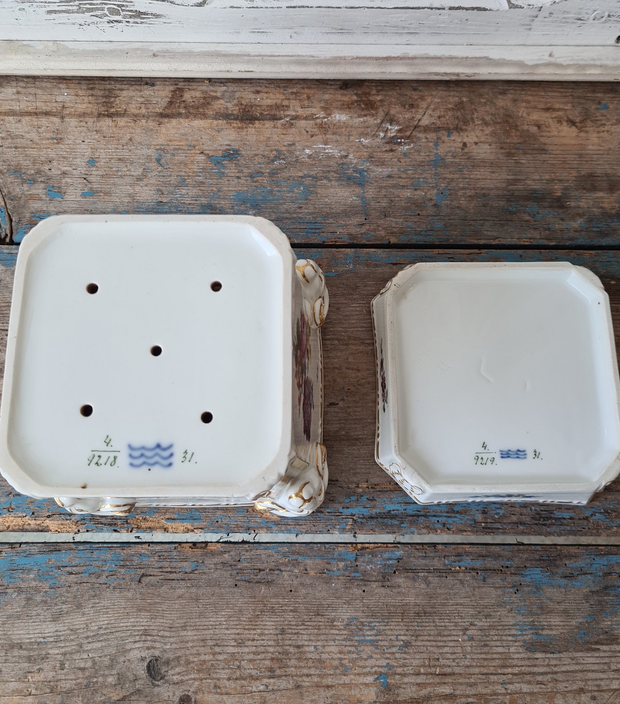 Potte og underskål er bemalet af samme maler.