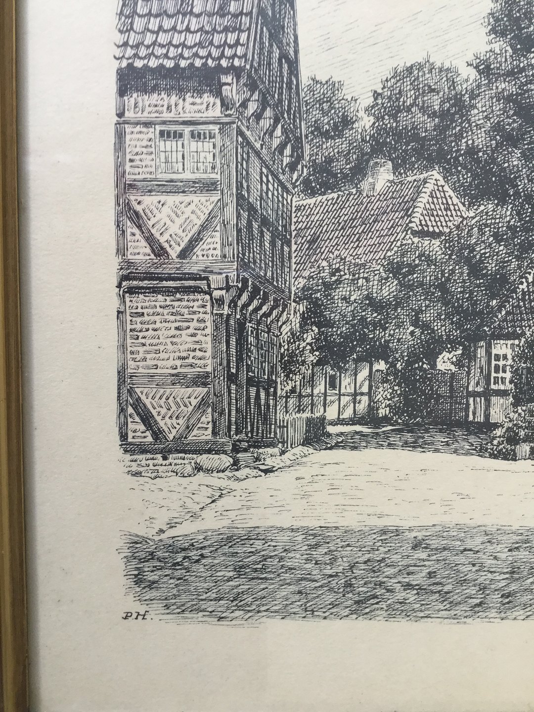 Radering af Peter Holm - Bindingsværks huse
