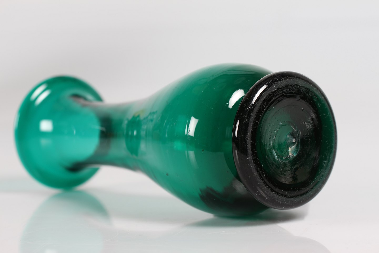 Fremstillet af mundblæst grønt glas