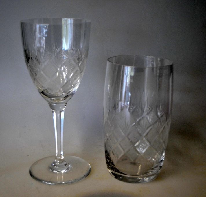 Krystal glasservice Antik med slebet stilk og kumme, 20. årh. Lyngby Glas. Danmark.