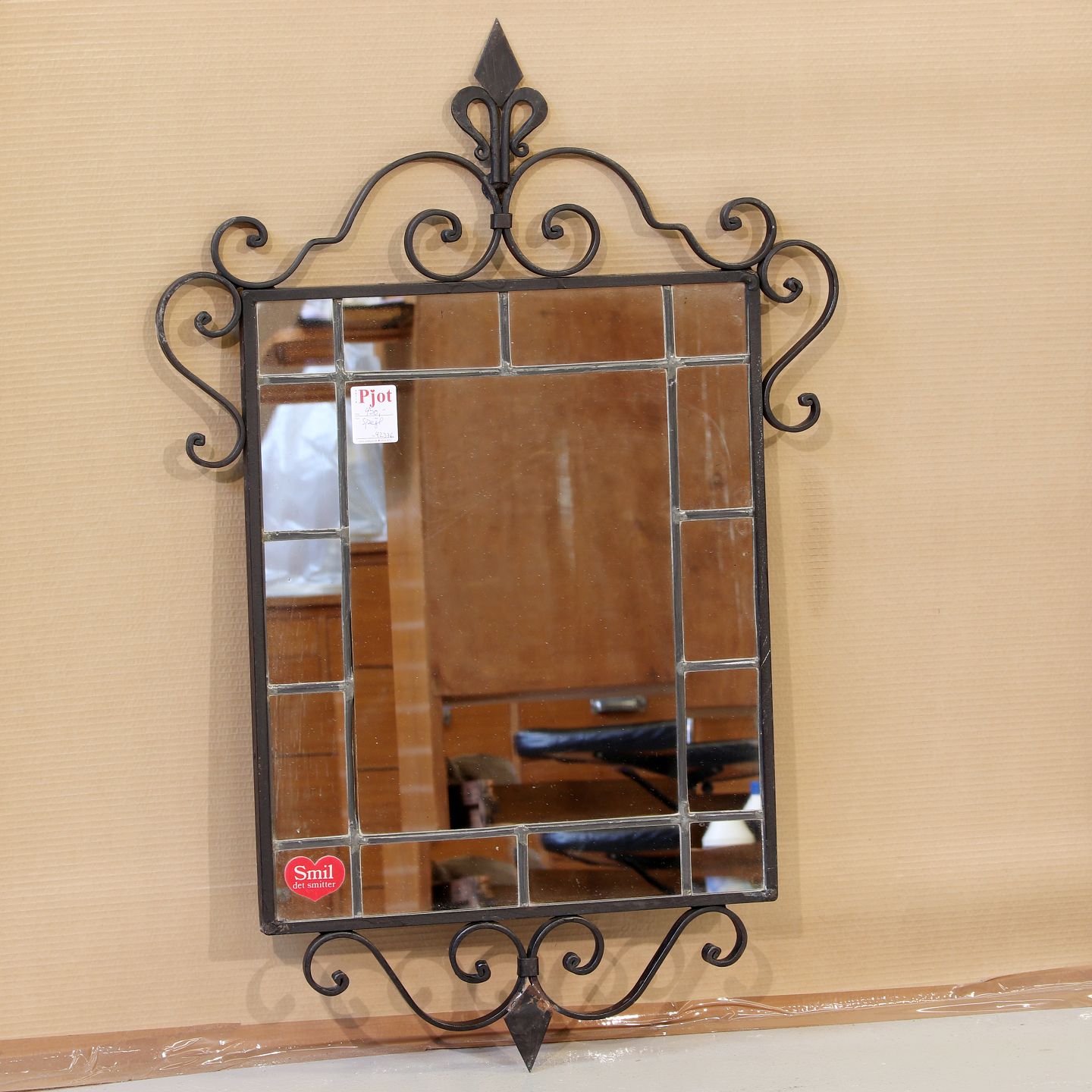 Blyindfattet spejl i smedejernsramme, (HxB 92x60 cm), 1930-1940