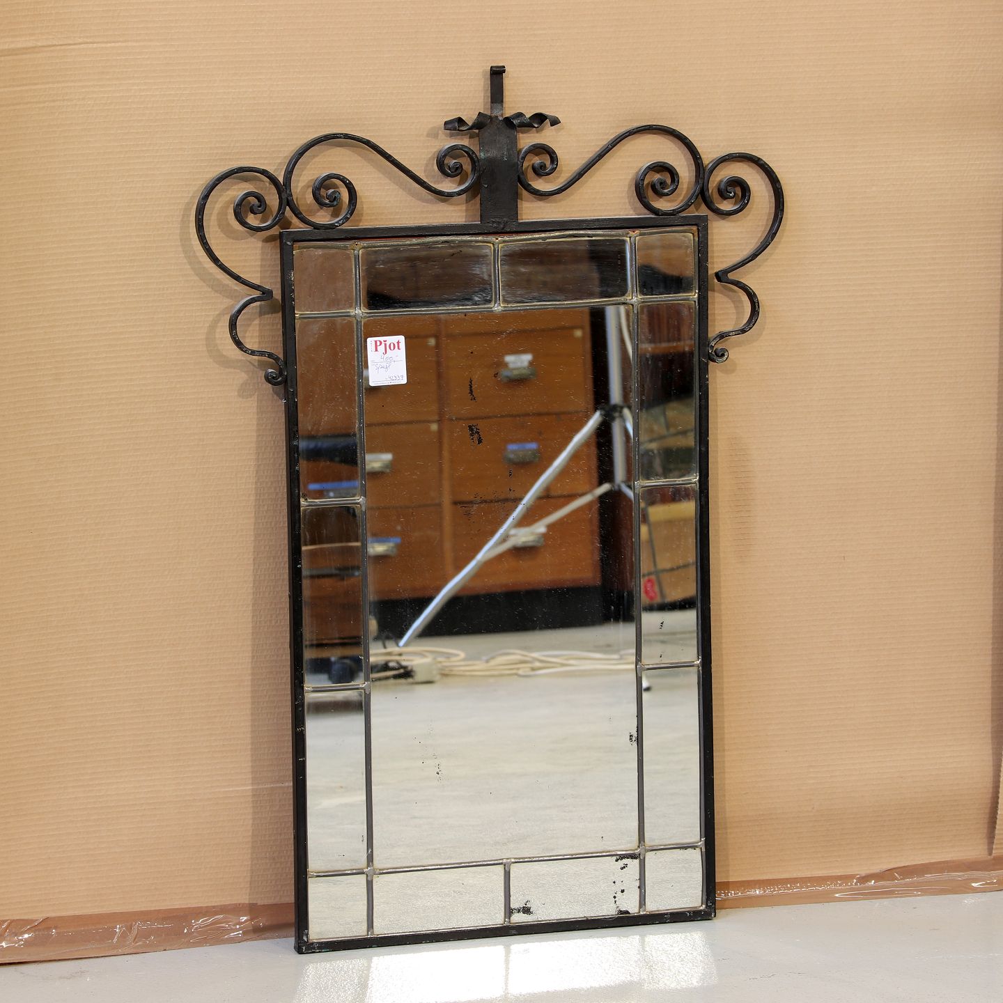 Blyindfattet spejl i smedejernsramme, (HxB 91x62 cm), 1930-1940