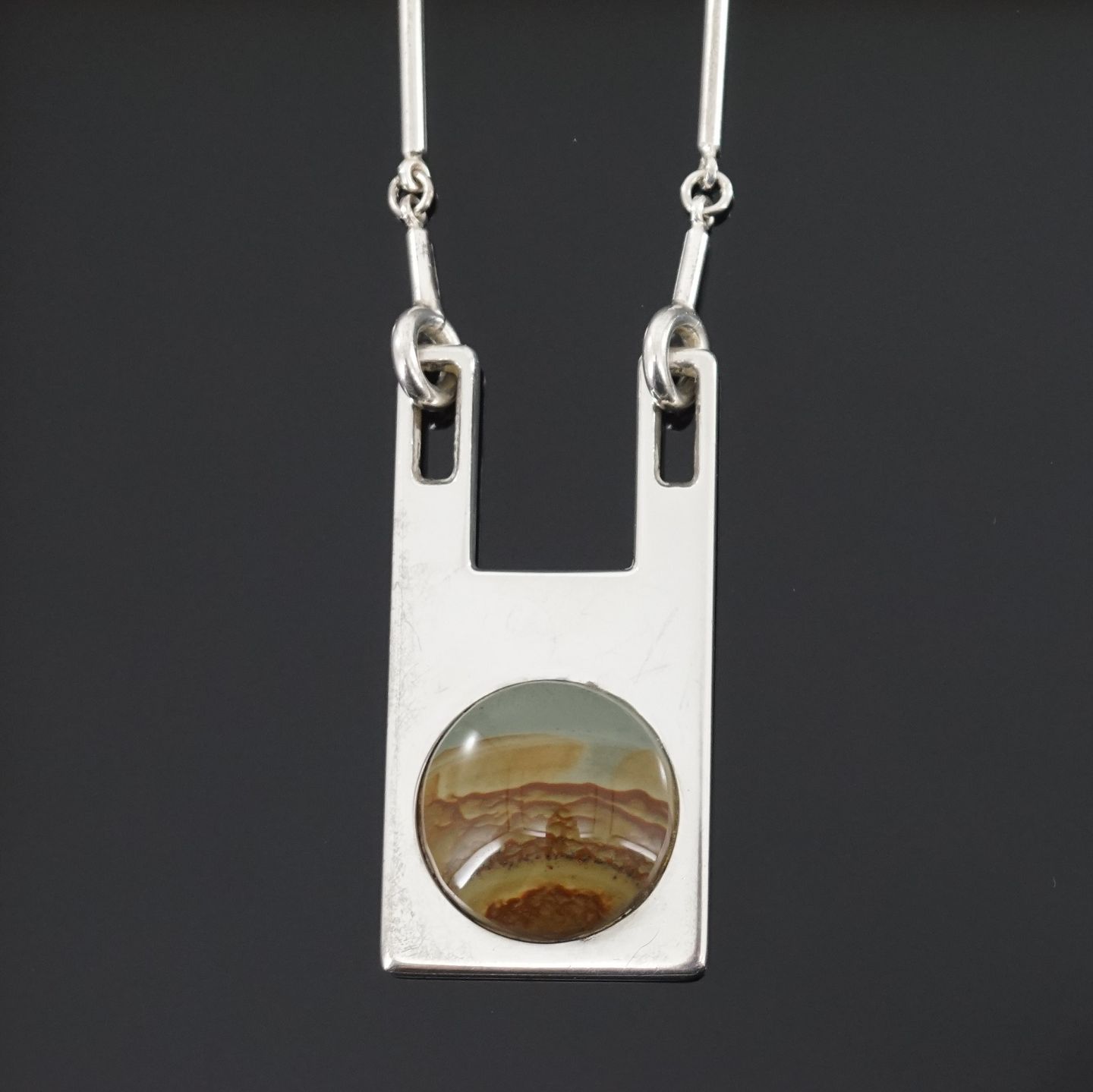 Sven Haugaard; Halskæde af sterling sølv, prydet med agat. Halskæde l. 52 cm.