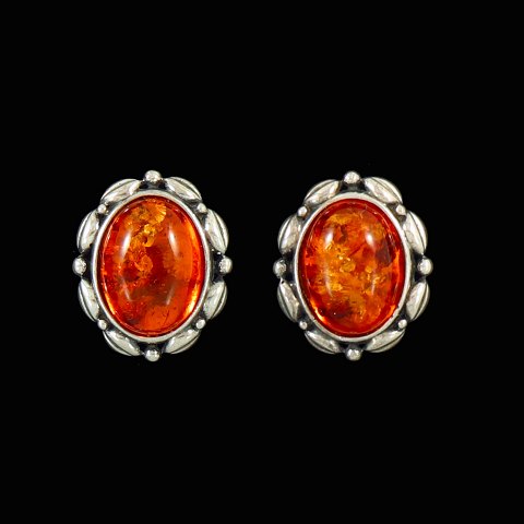 Einer Bernhard Fehrn. Skønvirke øreringe i sølv med rav.