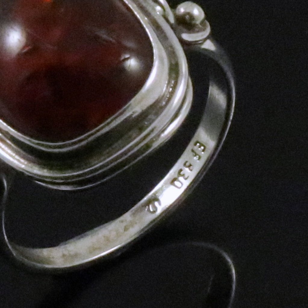 Einer Fehrn. Ring i Sterling Sølv med rav.