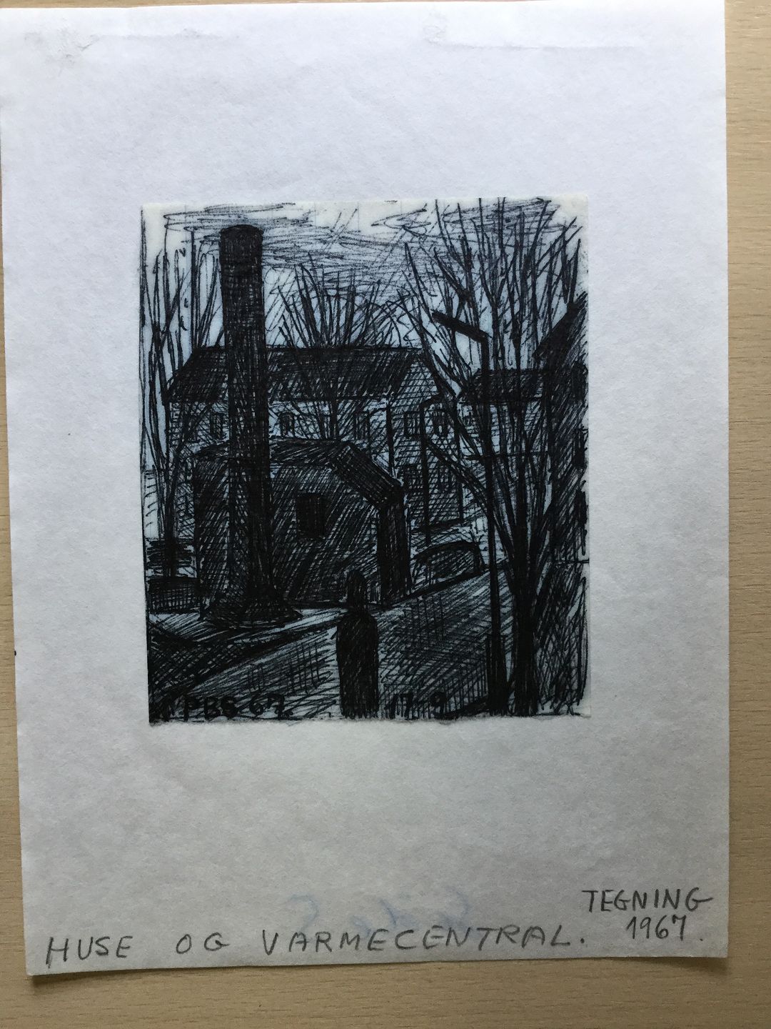 Tegning af Peder Brøndum Sørensen - Huse og varmecentral 1967.