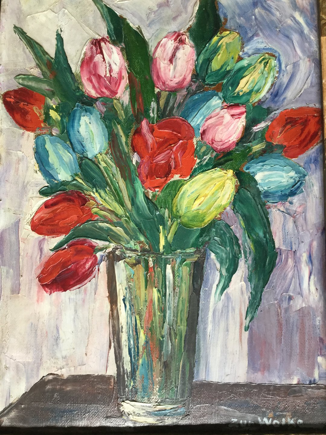 Maleri af Carl zur Wolke - Tulipaner i vase.