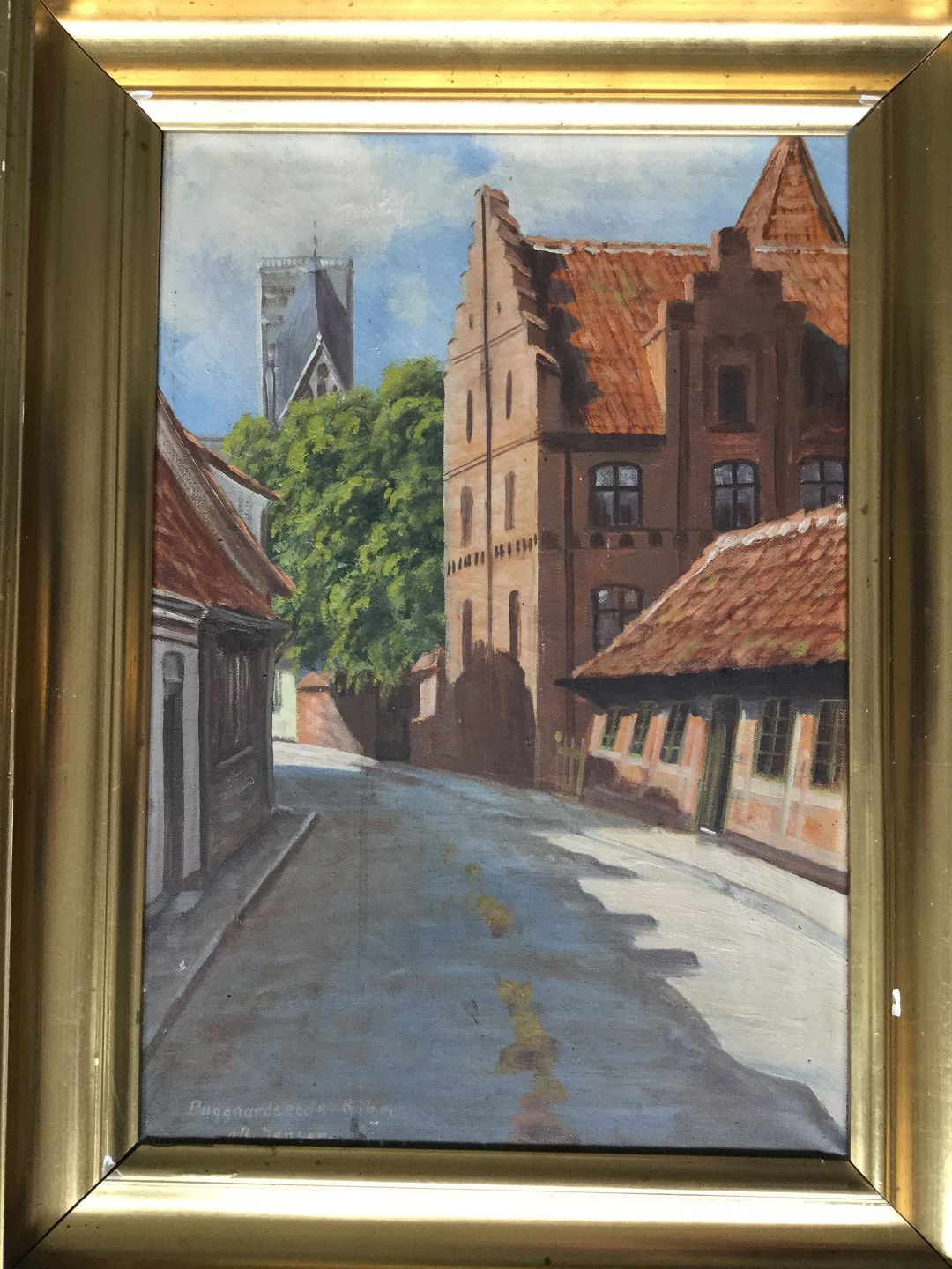 Maleri af Alfred Jensen - Parti fra Puggaardsgade i Ribe.