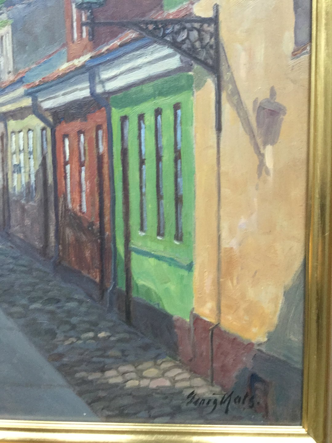 Maleri - Axel Møller - Parti fra Skolegade i Aalborg (nuv. Vingårdsgade) - sign. med pseudonym: Georg Hals