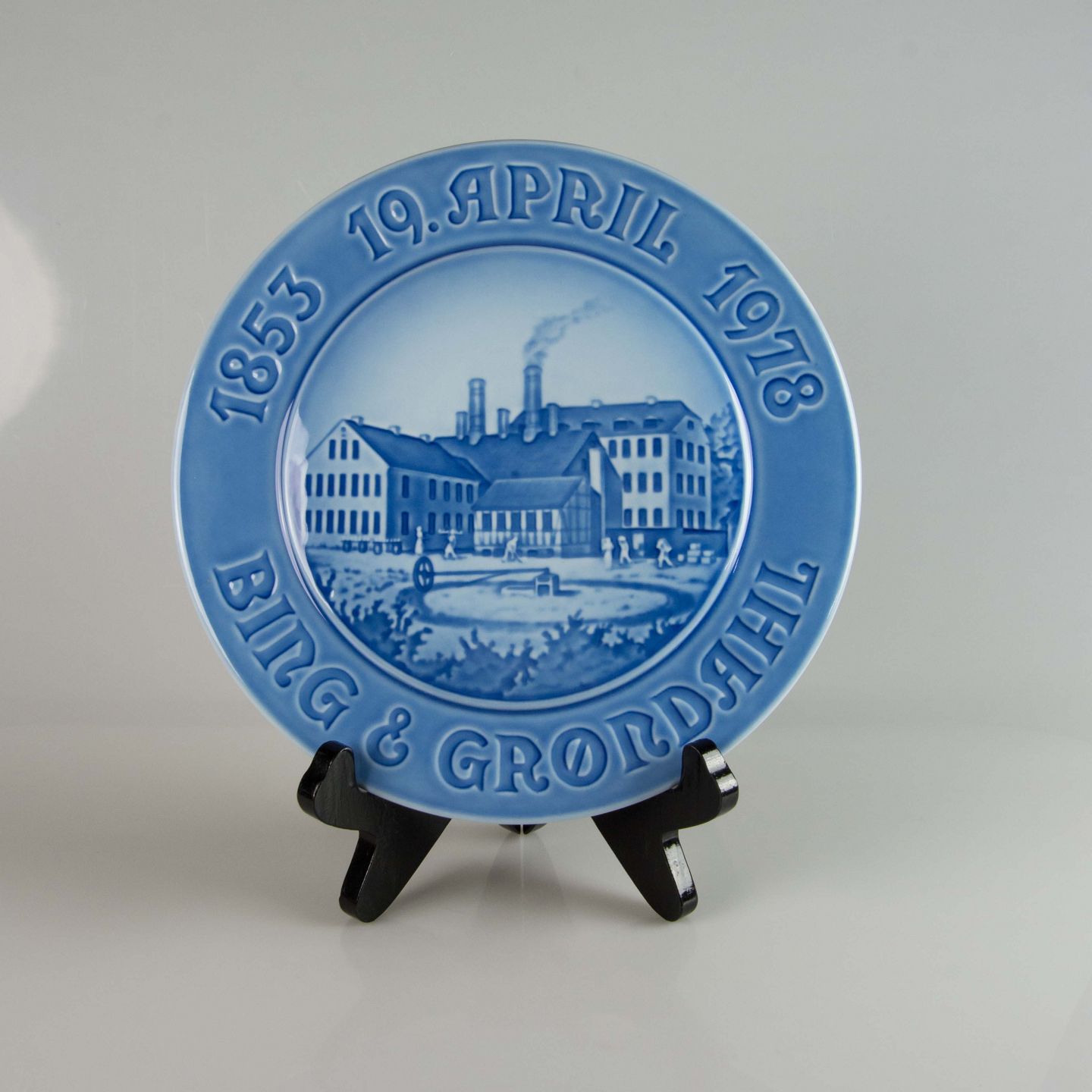 Platte i porcelæn med motiv af Bing & Grøndahl fabrikken nr. 9204