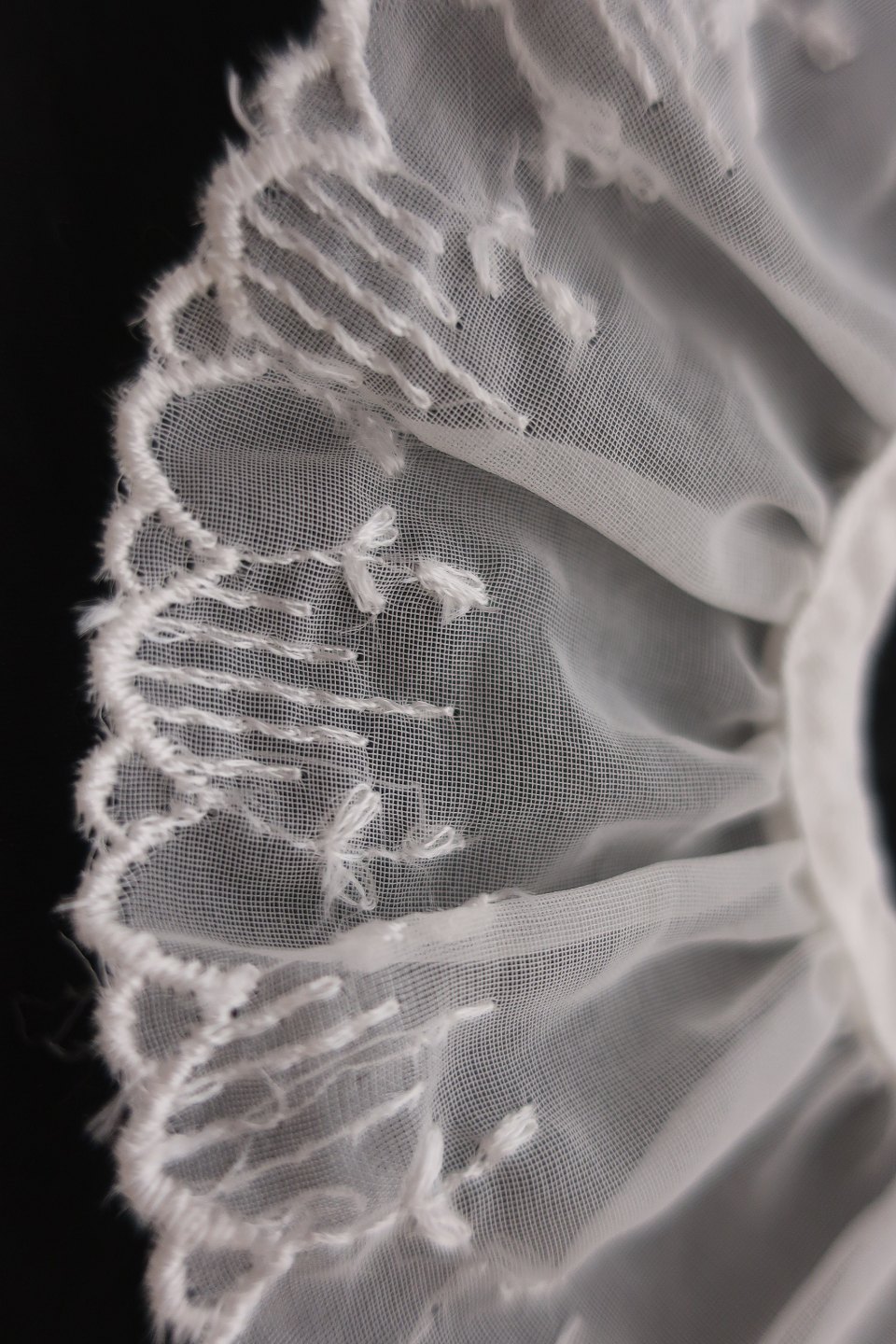 Barne krave af smukt, håndbroderet tyl-broderi fra vores mormors/farmors/oldemors tid