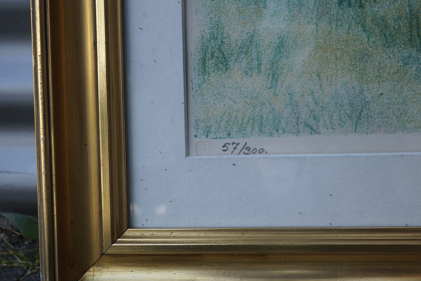 Båd der er trukket op på stranden. Litografi, nr. 57/300, af Lars Swane