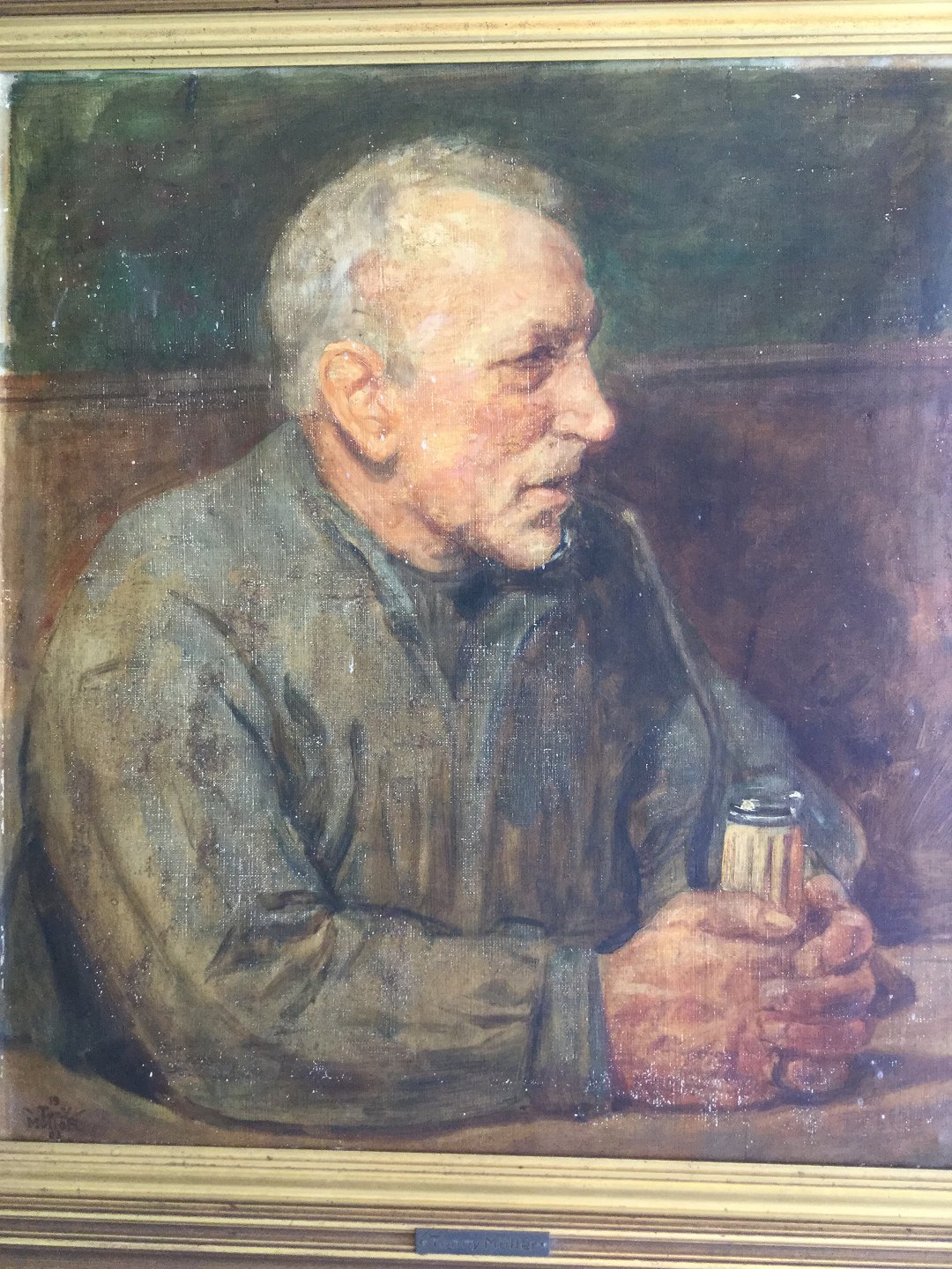 Maleriet fremstår lidt "tynd" i malingen, sikkert pga rensning.