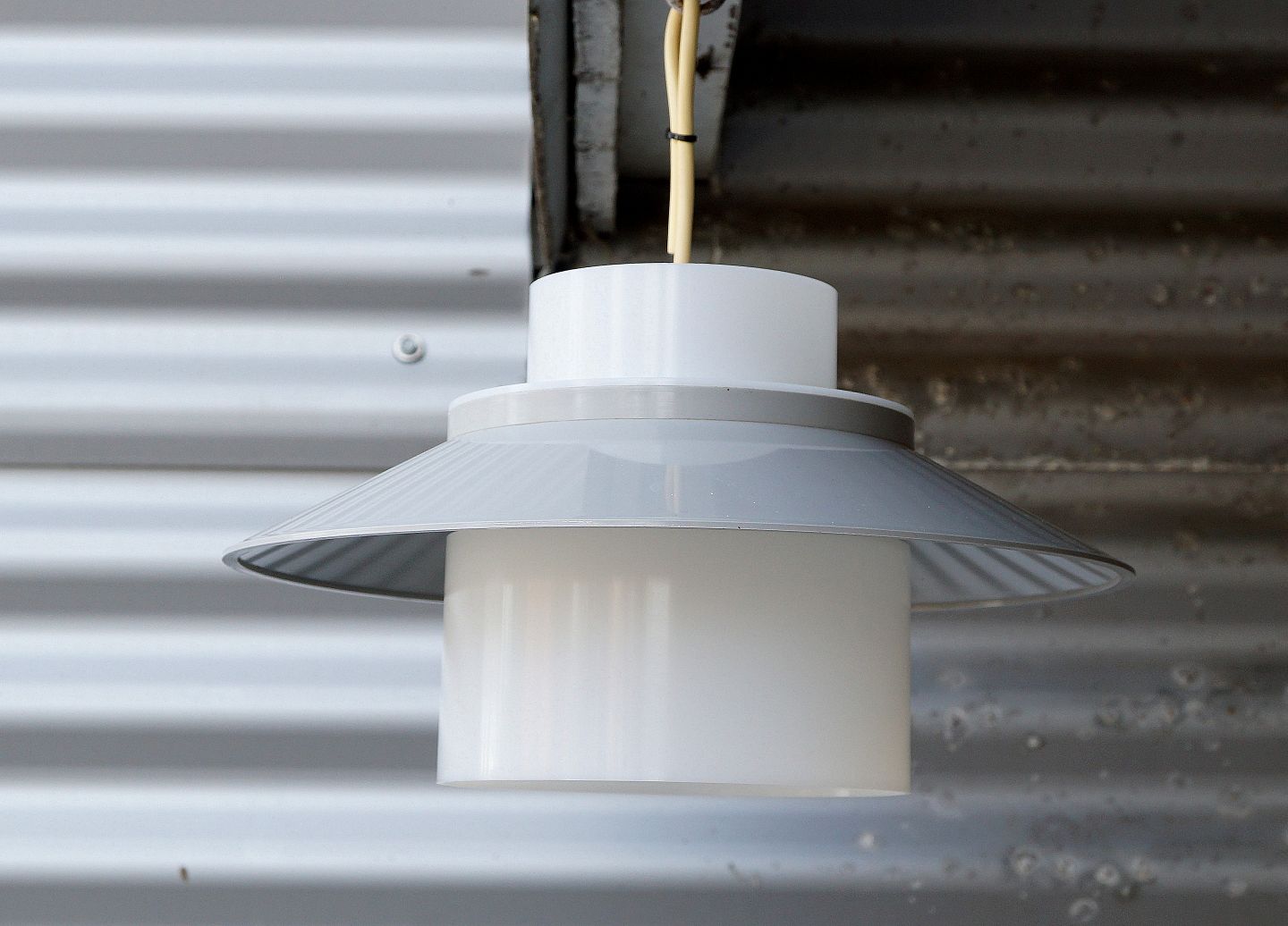 Lysegrå Dinette pendel. Fin pendel i lysegrå og hvid plastik