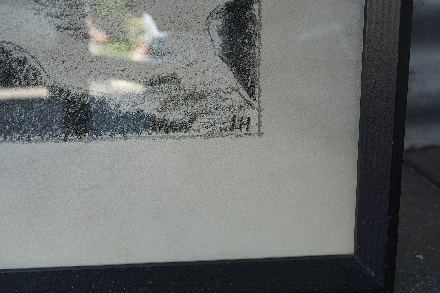 Indrammet tryk i sort træramme med motiv af klitter ved hav