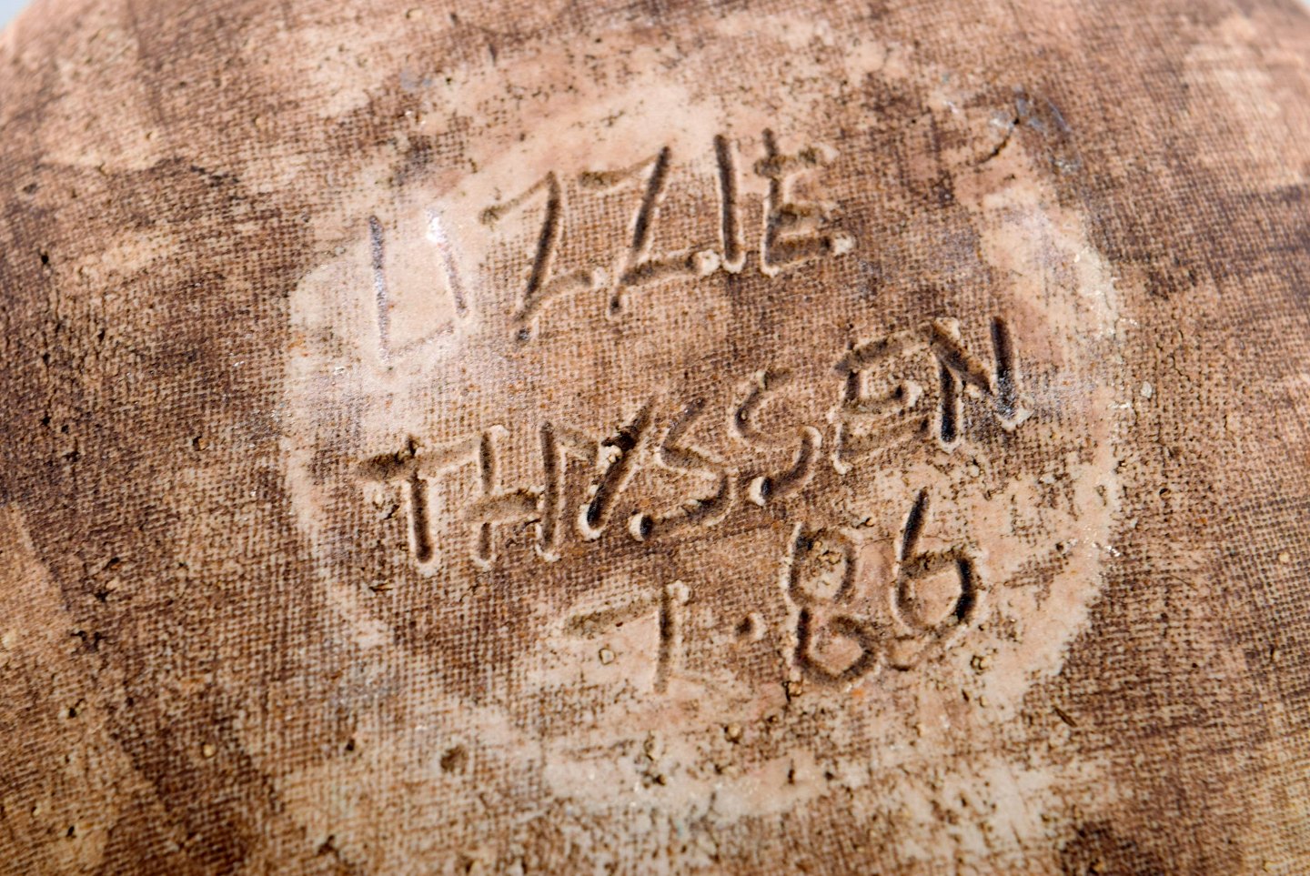 Lizzie Schnakenburg Thyssen (født 1925), dansk kunstner og keramiker. Unika skål i keramik. Dateret 1986.