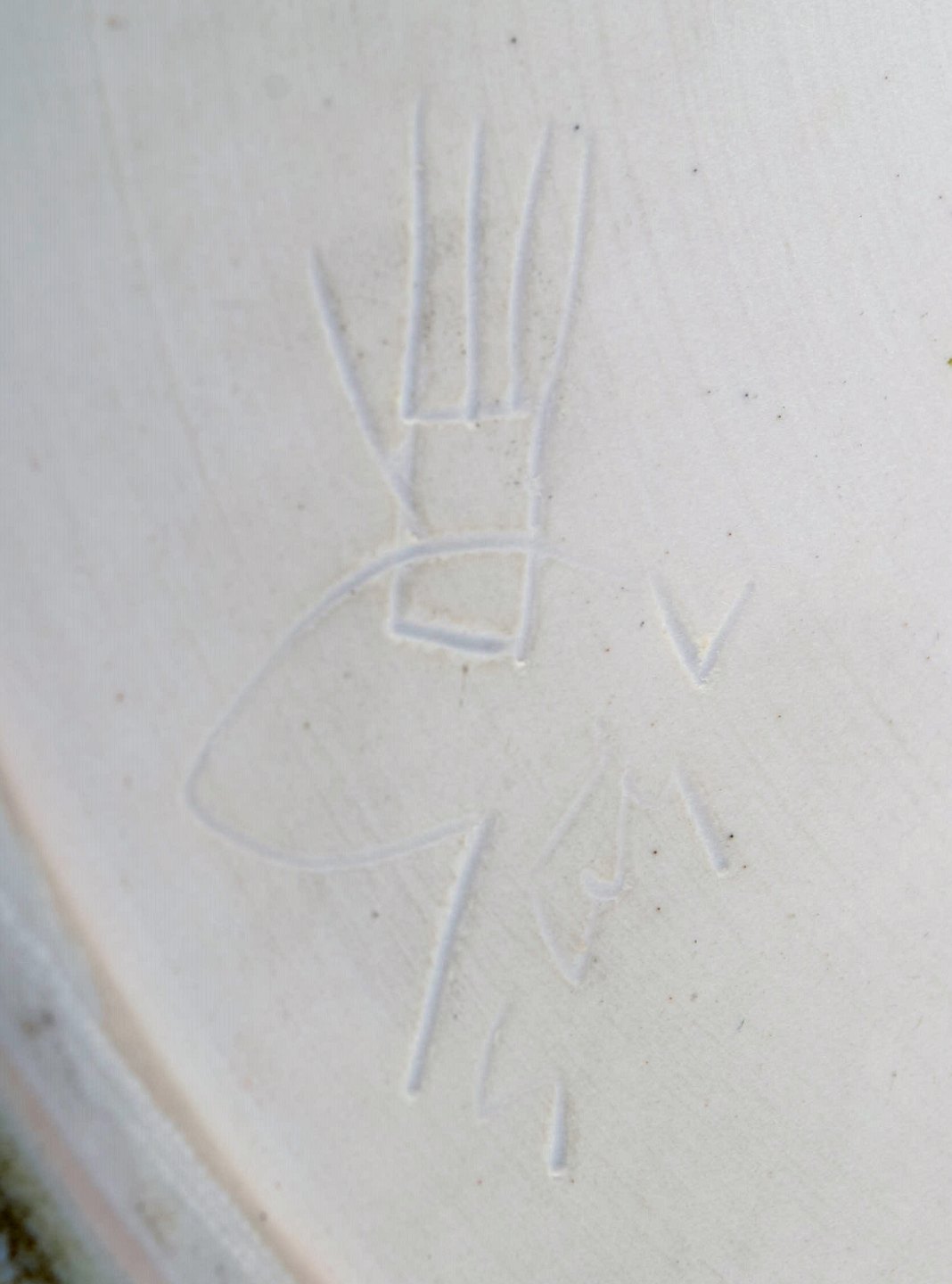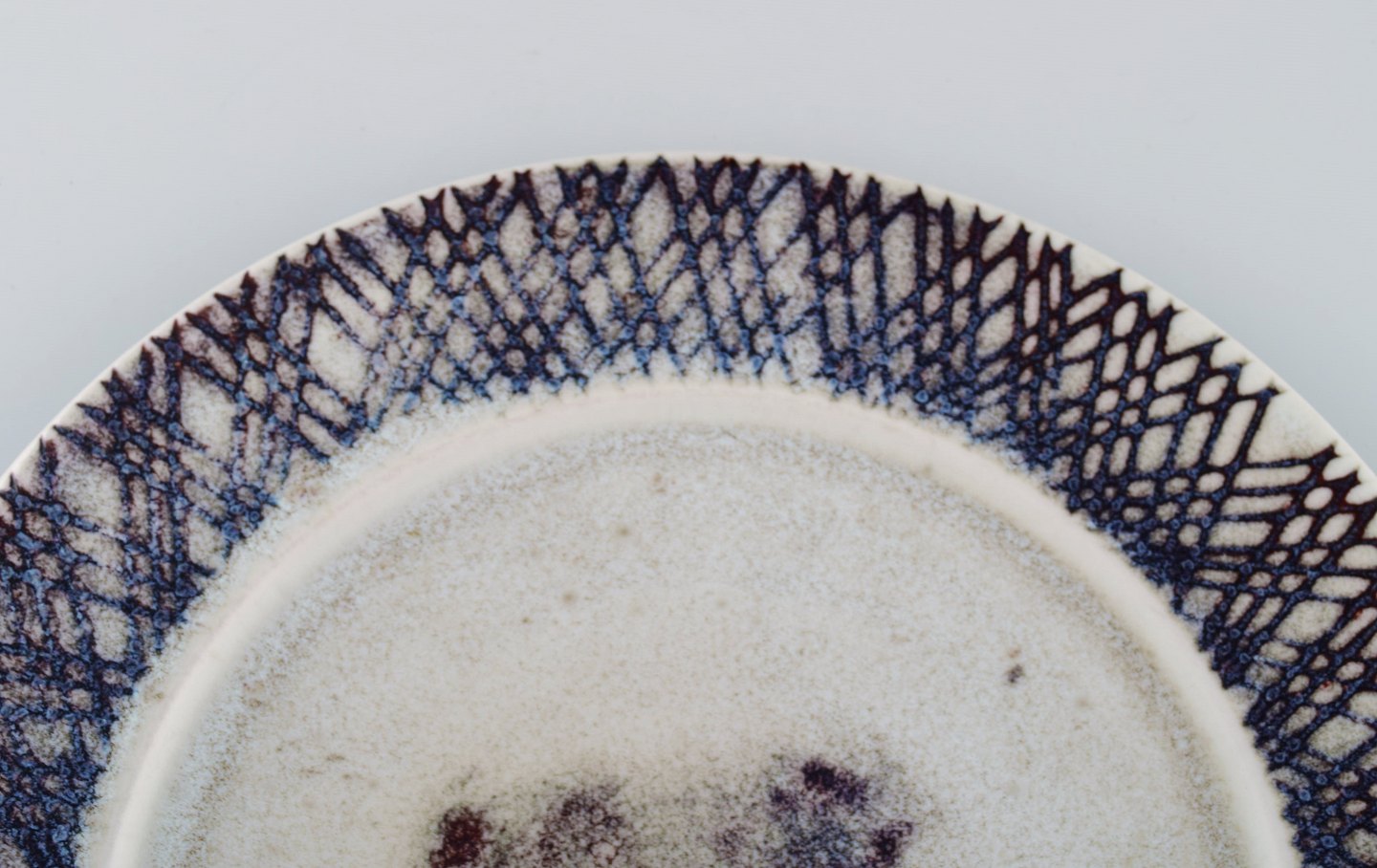 Stig Lindberg for Gustavsberg Studiohand. Stort fad i glaseret keramik. Smuk glasur i violette toner. Midt 1900-tallet.