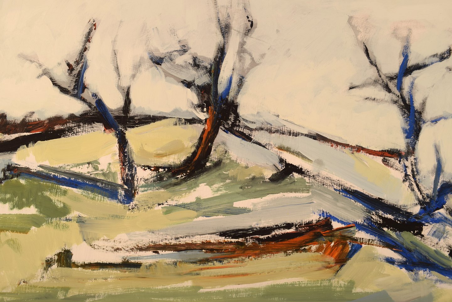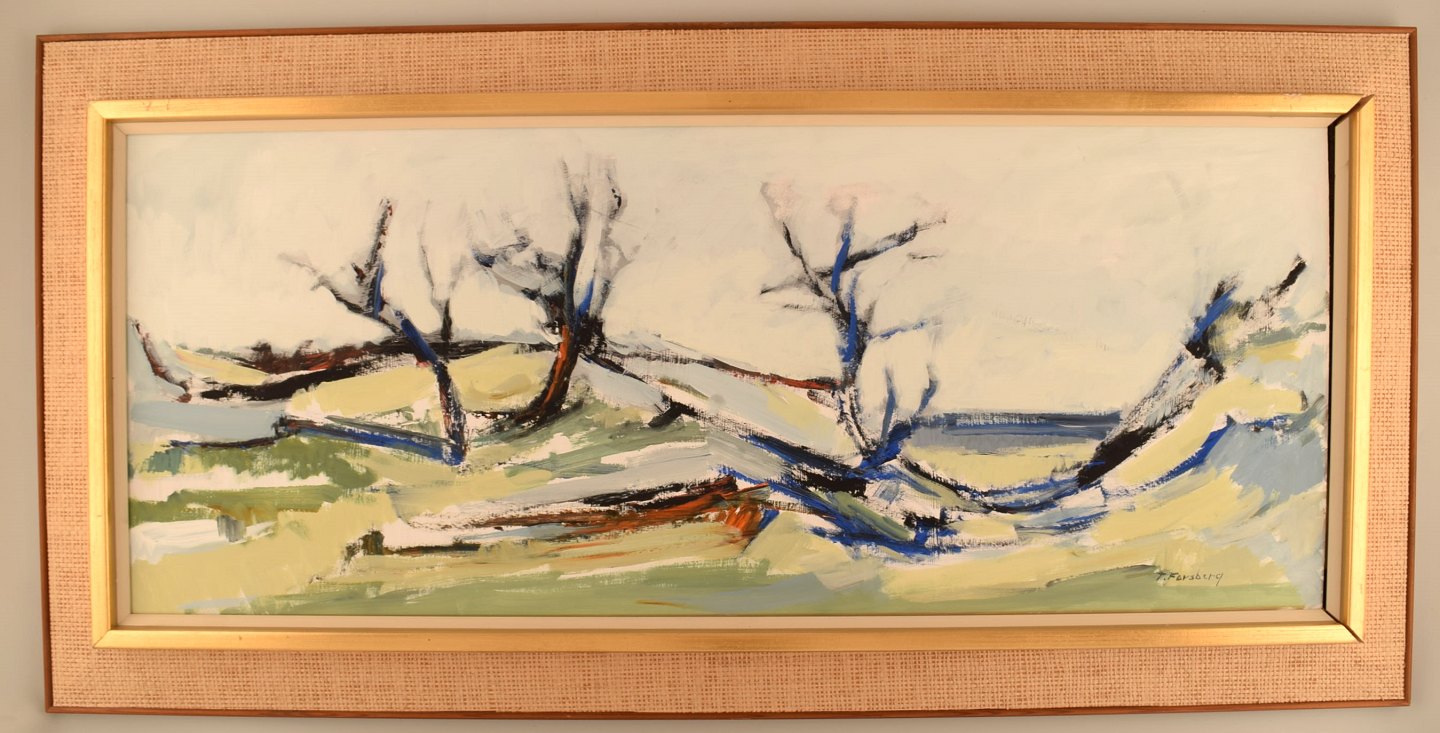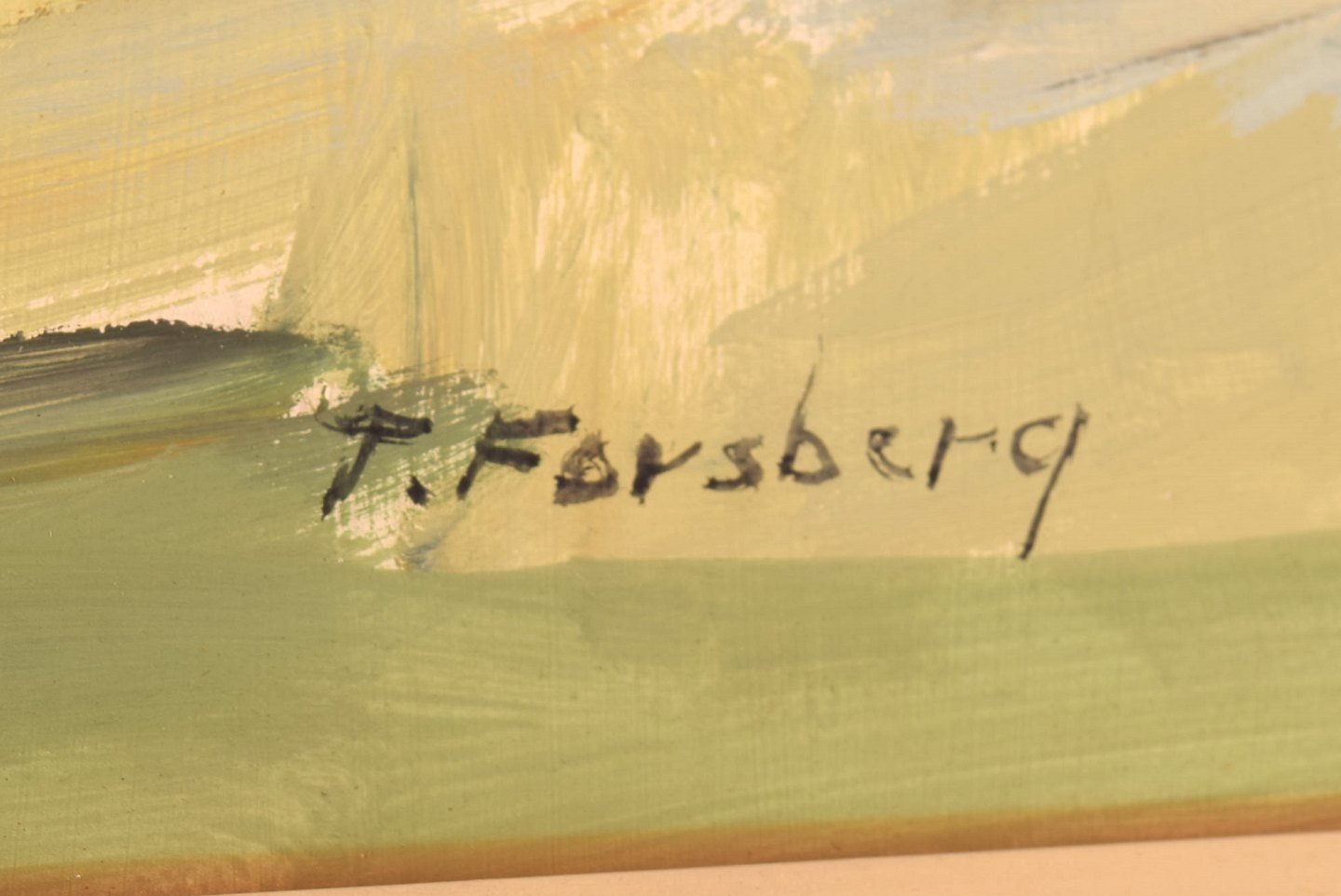 Torgny Forsberg (1920-1992), svensk kunstmaler. Olie på plade. Modernistisk landskab. 1960/70'erne.