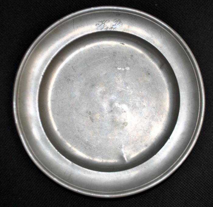 Tysk tin tallerken, 1881. Tyskland. Stemplet.: Prob Zinn. Selb. På fane: Inskription K.D 1881, Dia.: 23 cm.