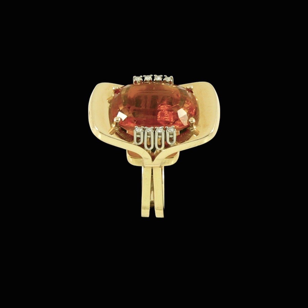 Cocktailring i 14k guld med citrin og diamanter 0.16ct.