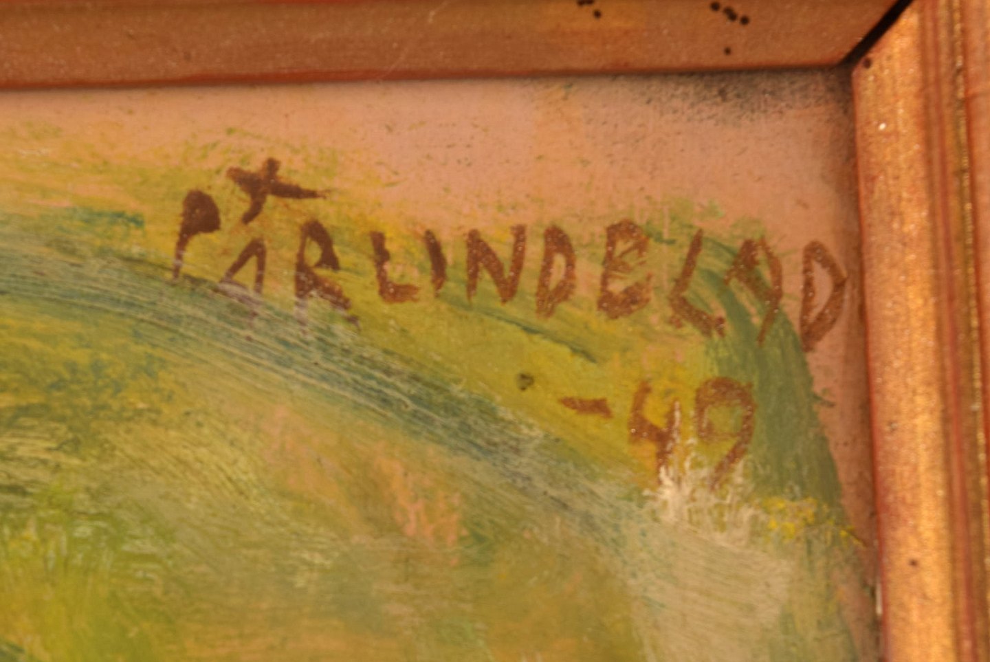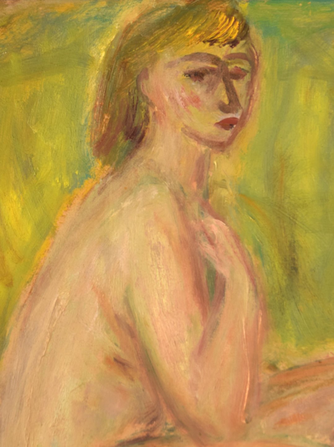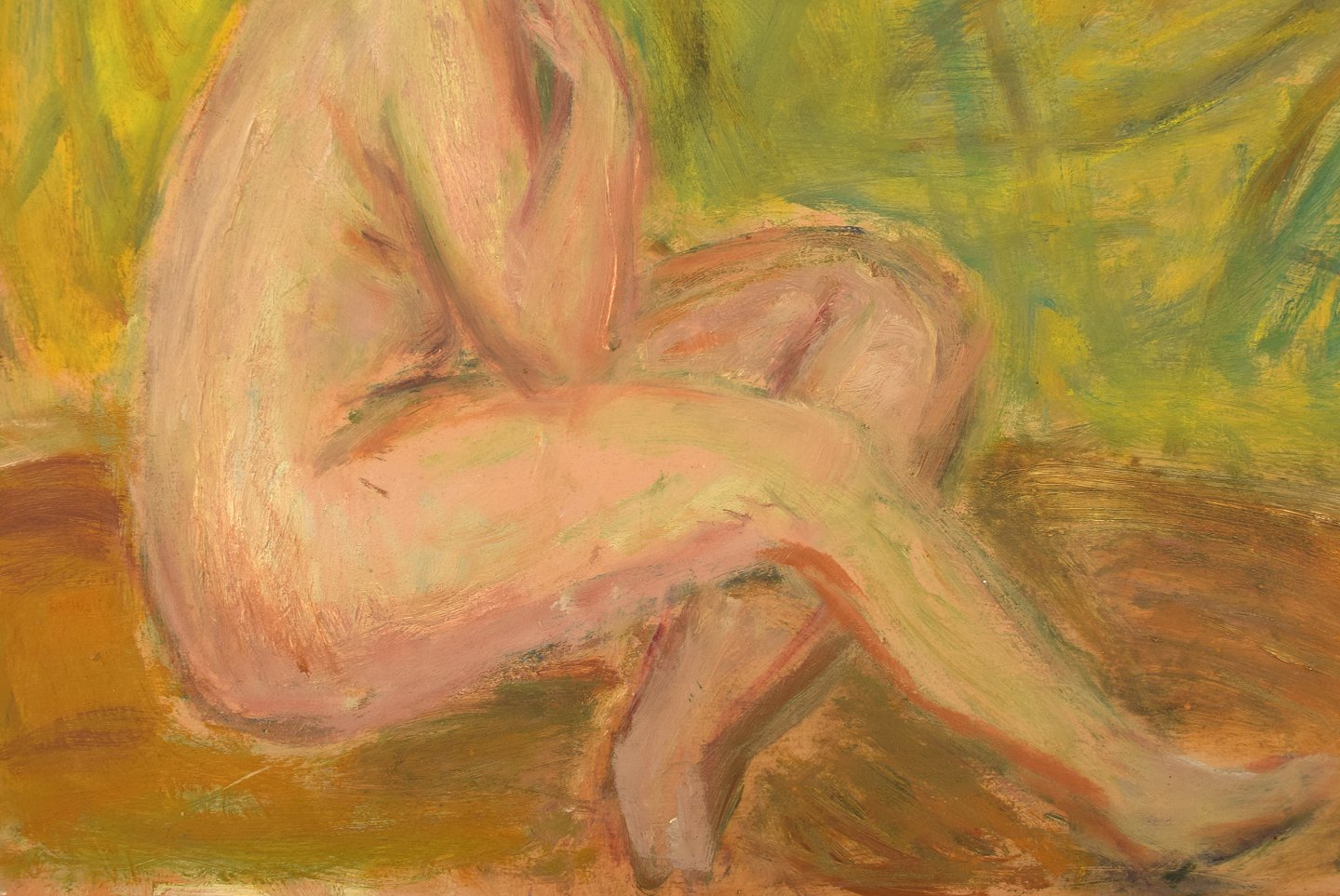 Pär Lindblad (f. 1907, d.1981), svensk kunstner. Olie på plade. "Modell". Nøgen kvinde. Dateret 1949.