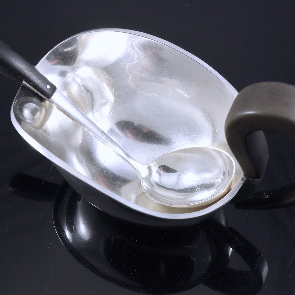 Svend Weihrauch 1899-1962 for F. Hingelberg. Sauce kande og ske i sterling sølv - 1938.