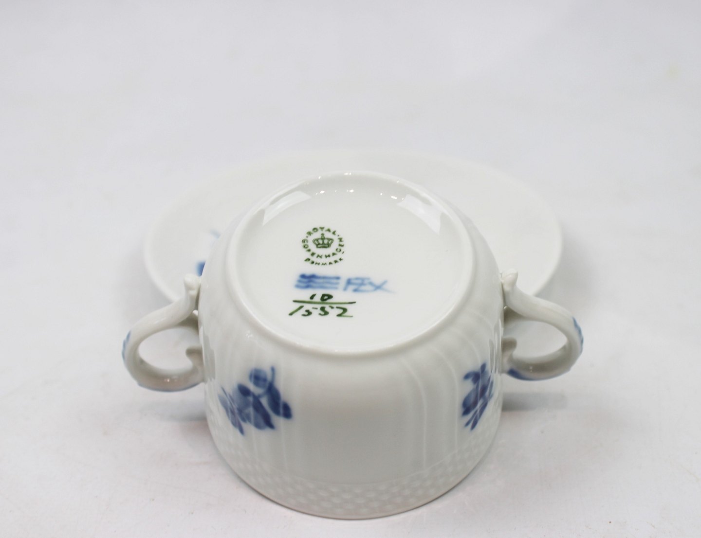 Bouillonkop med underkop, nr.: 1552, i Blå Blomst af Royal Copenhagen. Spørg for antal på lager.