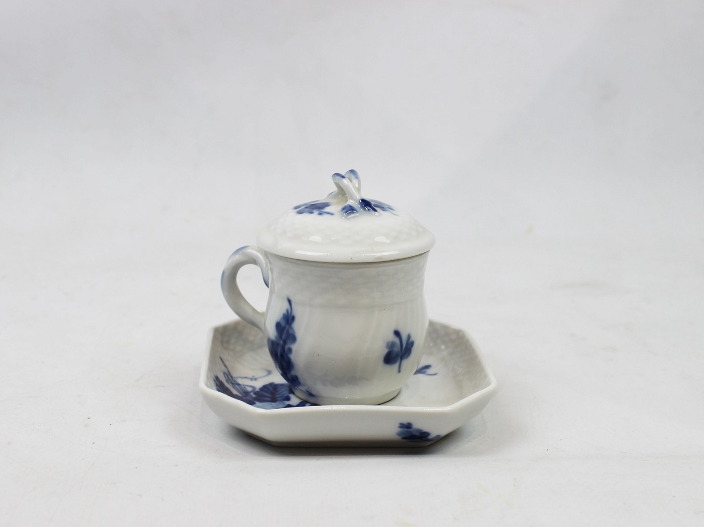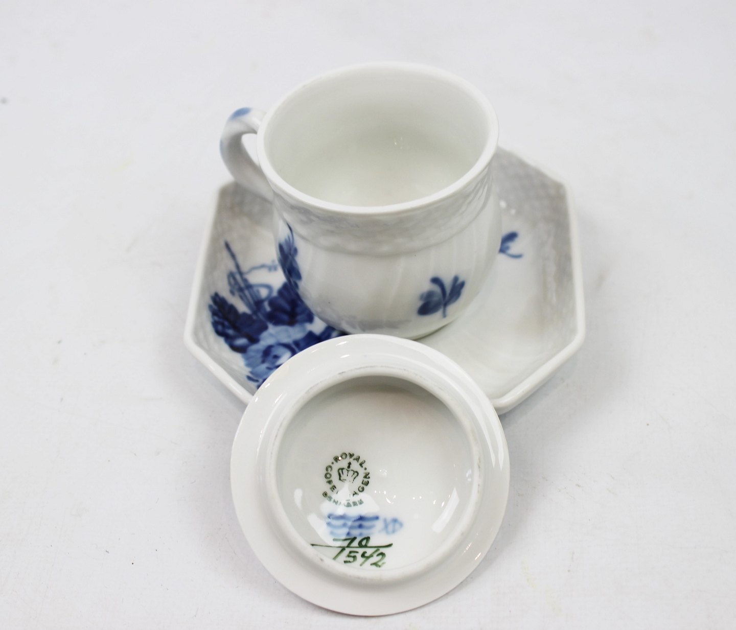 Cremekop med underskål, nr.: 1542, i Blå Blomst Svejfet af Royal Copenhagen.