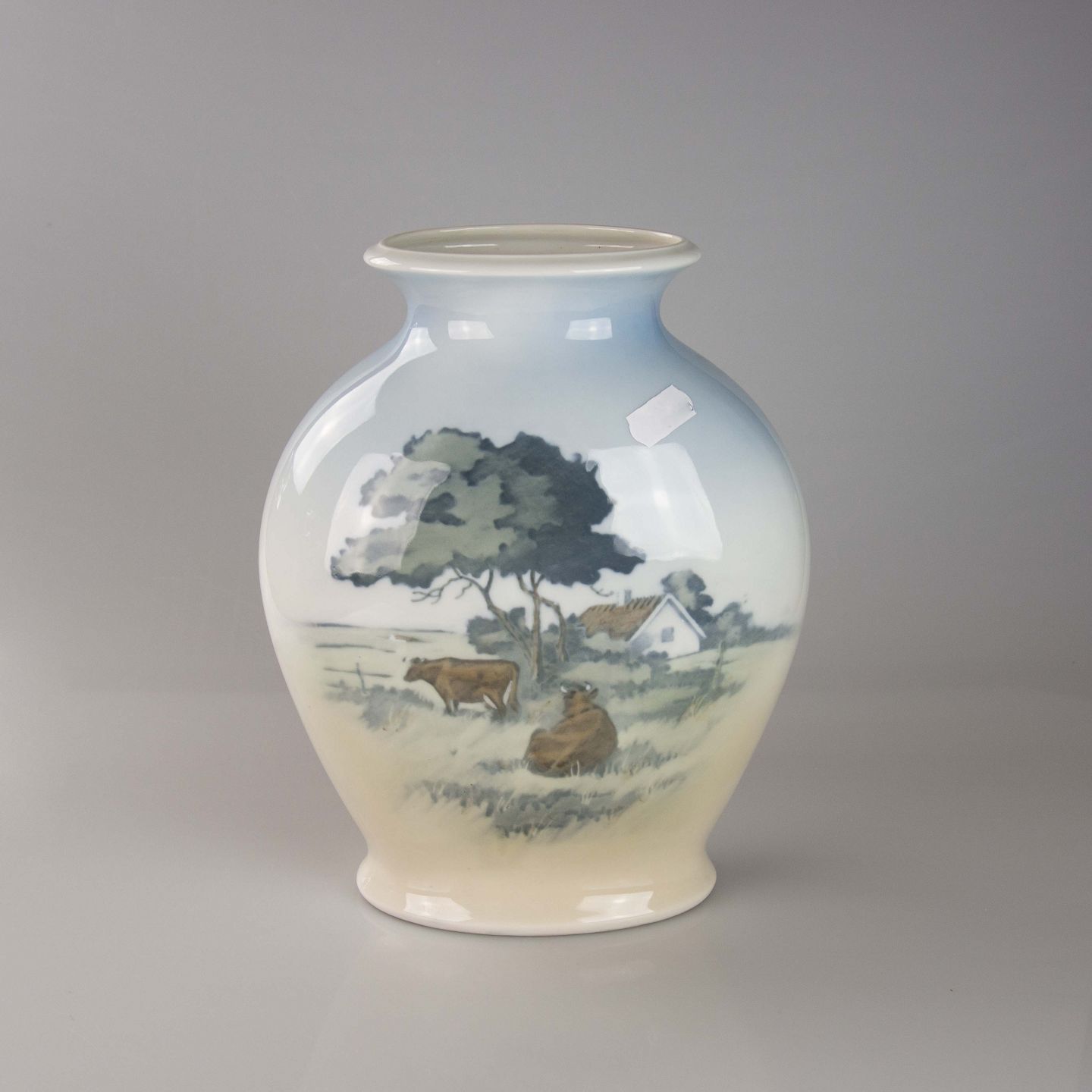 Vase i porcelæn med motiv af landskab med køer nr. 4500