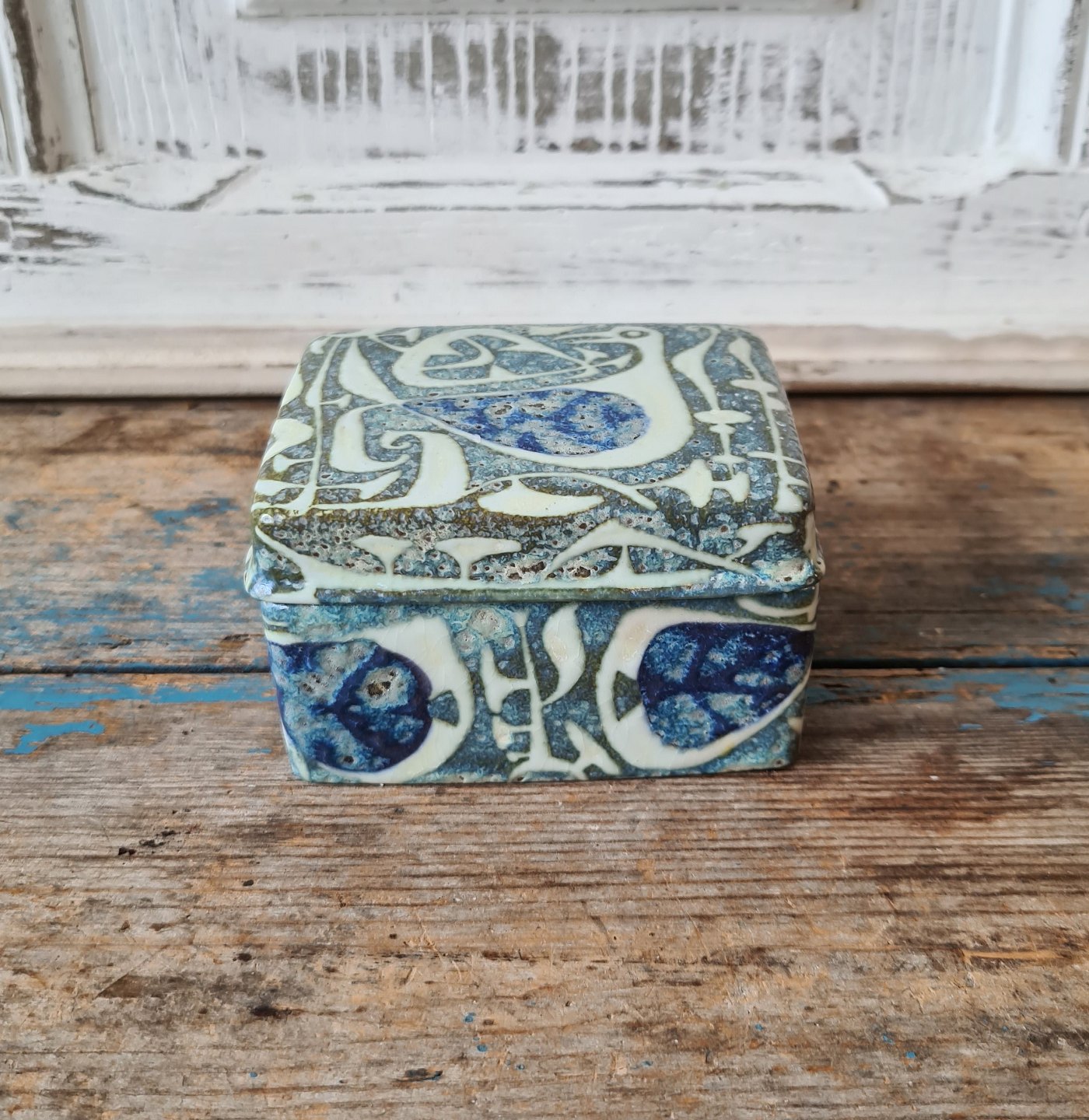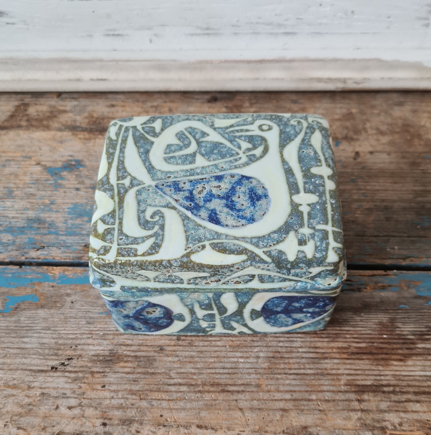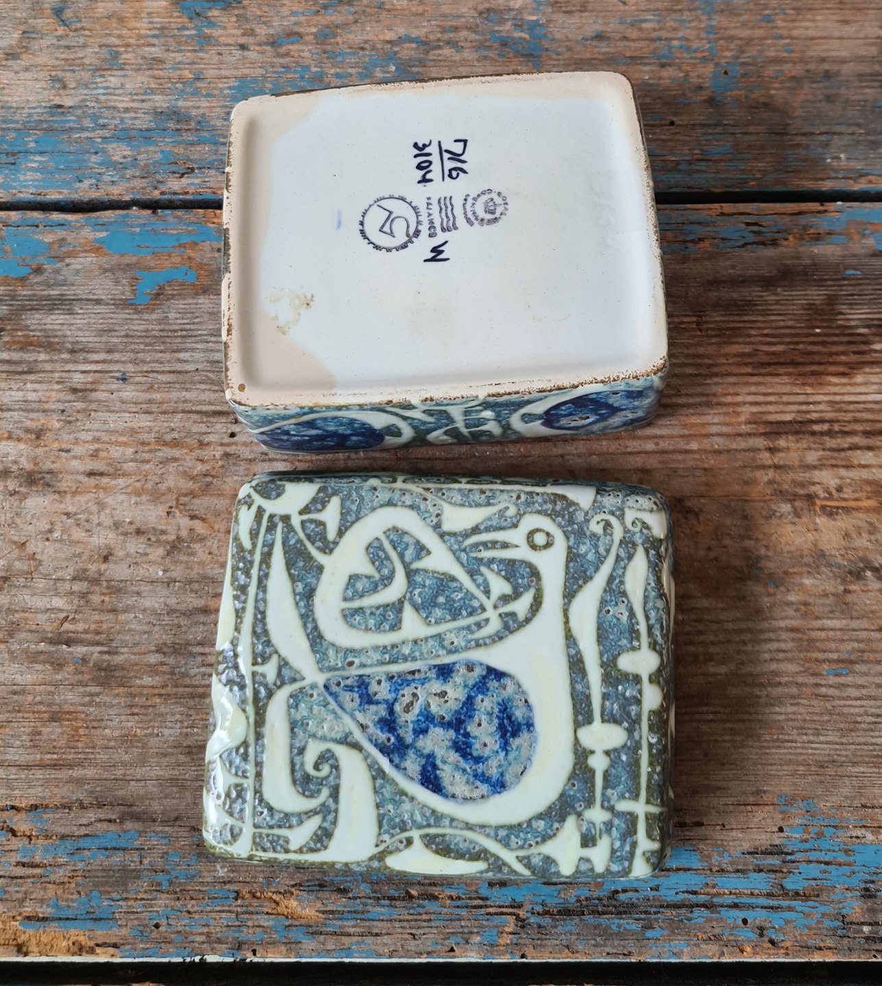 Aluminia Tenera lågdåse dekoreret med fugl.