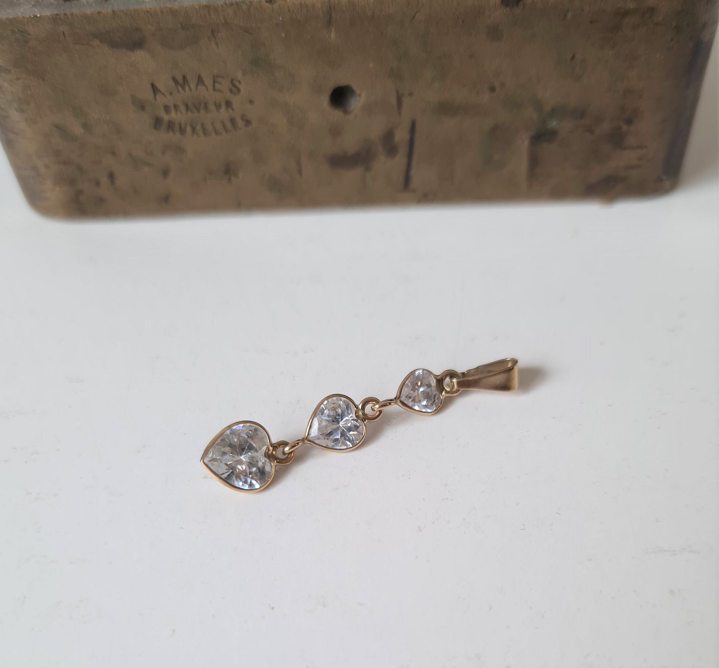 Vedhæng i 8 kt guld med tre ziakon hjerter