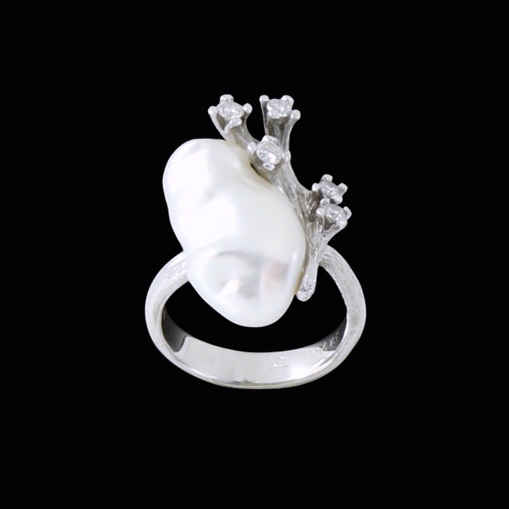 Ole Lynggaard. Ring i 14k hvidguld med Perle og diamanter 0.14 ct.