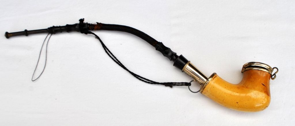 Long pipe with meerschaum, 19th century Denmark. Silver-plated lid. L .: 44 cm. Height pipe head: 6.5 cm.