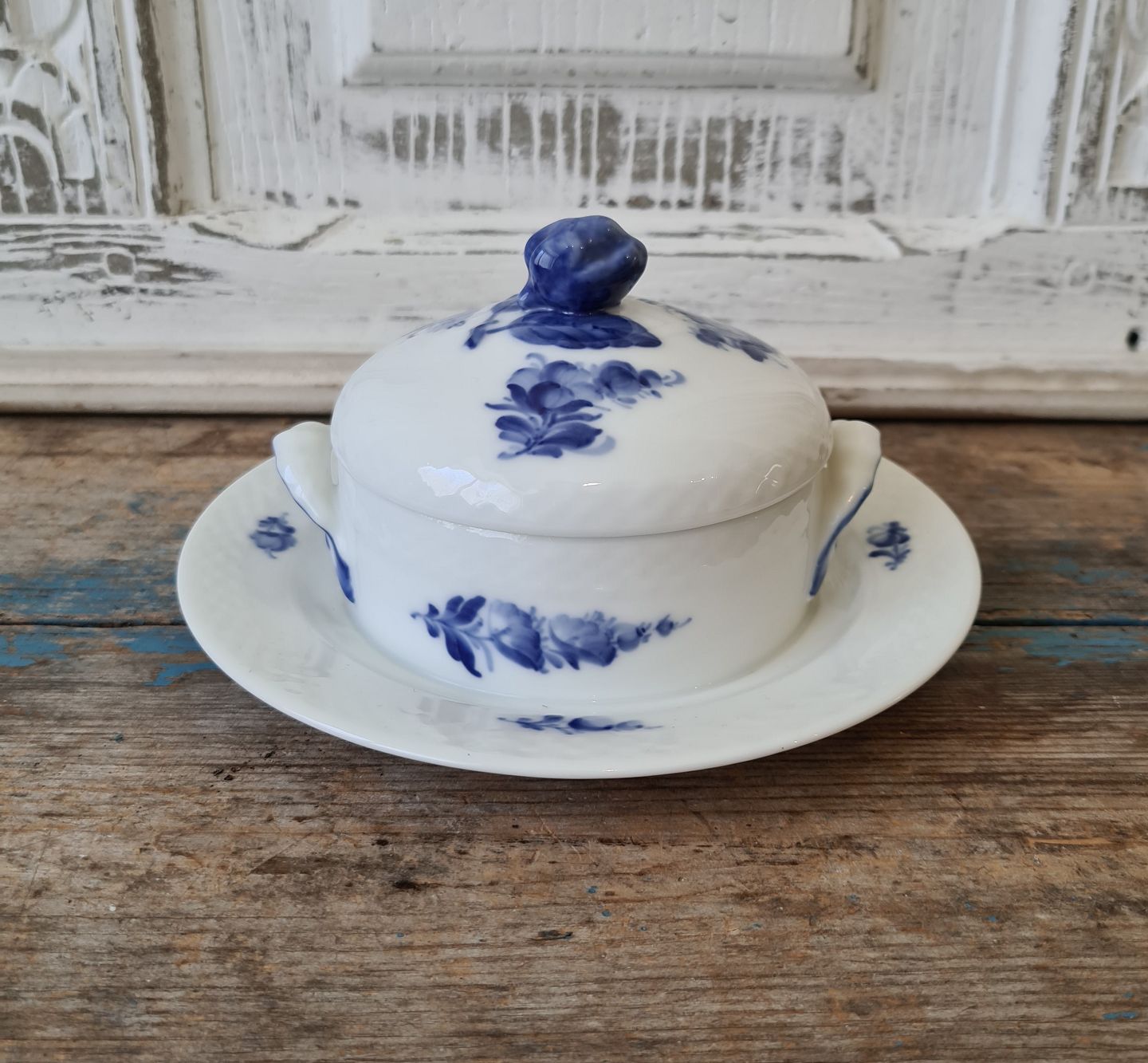 Royal Copenhagen Flettet Blå Blomst smørskål på fast underfad