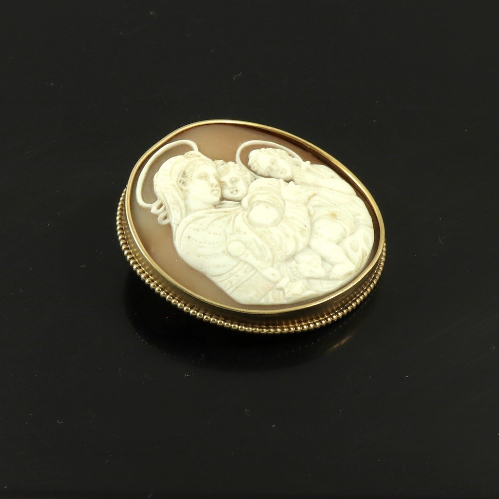 H. Fischer - Kbh. Kamé broche i 14k Guld.