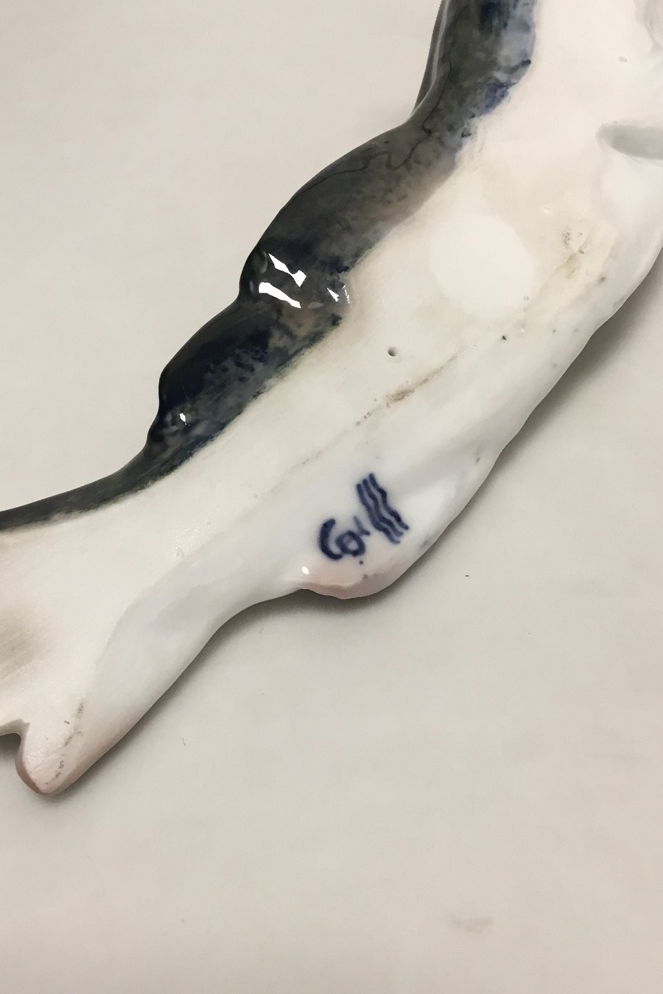 Royal Copenhagen Art Nouveau Hængevase udformet som Torsk No 458 unika malet af Oluf Jensen
